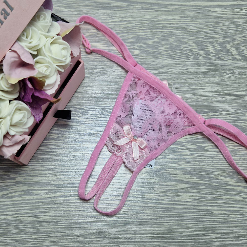 Állítható pántos csipkés RÓZSASZÍN NYITOTT tanga