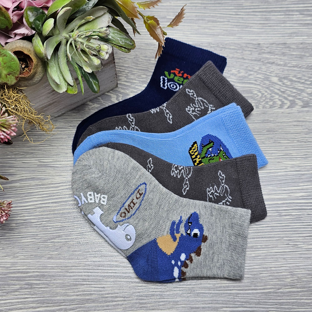 BÉBI fiú zokni dínó mintás 5 pár/cs CSÚSZÁSGÁTLÓS talprésszel