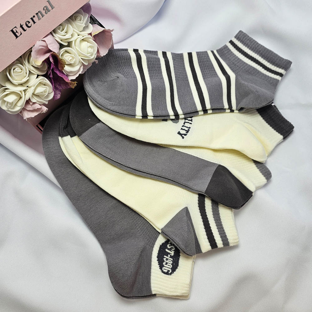 1 csomag zokni a képen látható szín-összeállításban 5 páras kiszerelésben kapható.