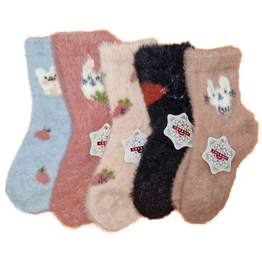 Gyerek lány VASTAG pihe-puha zokni NYUSZI mintás 5 pár/csomag