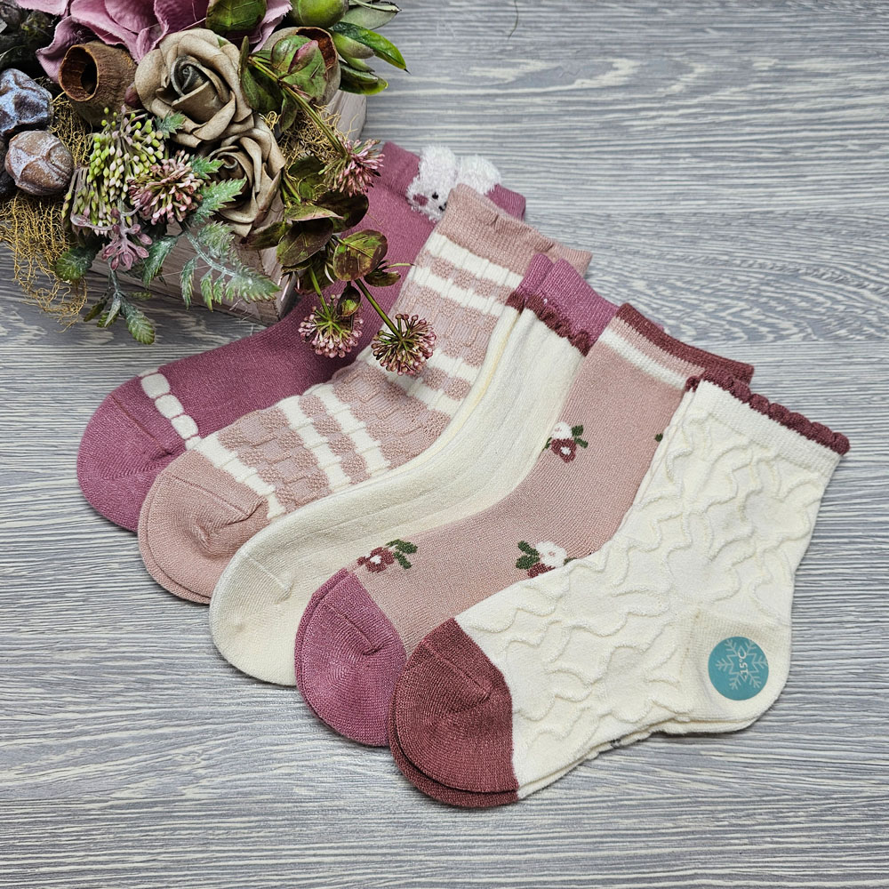 Lány VASTAG gyapjú virág mintás zokni 5 pár/csomag