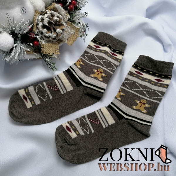 Mikulásos zokni Mézi mintás, melír-barna színben!