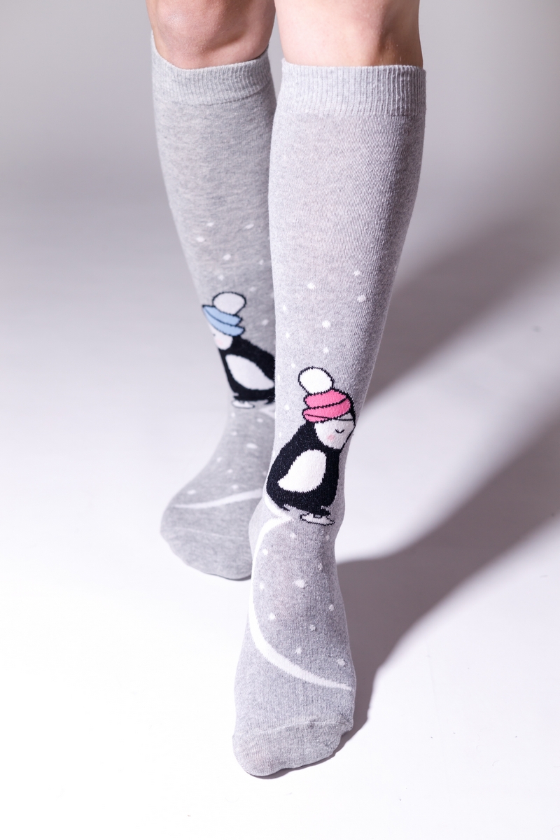 Térdzokni PINGVIN mintás, felemás színű sapkában!