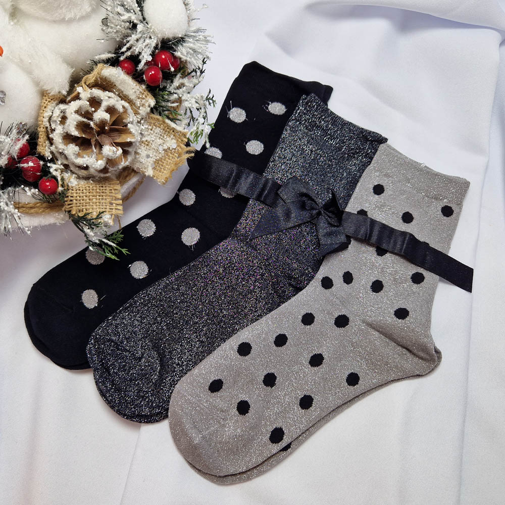 Ajándék zokni 3 PÁR/CS LUREXES-CSILLOGÓS-PÖTTYÖS