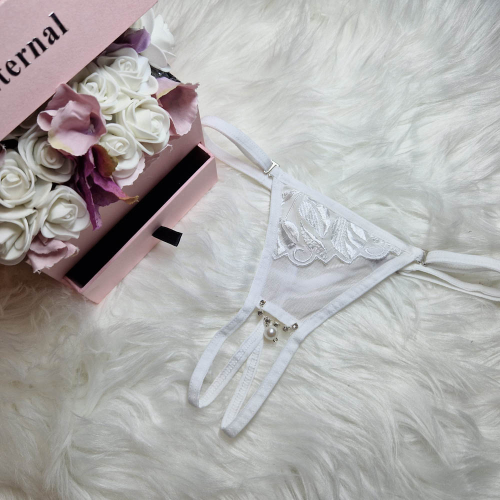 Kreona állító pántos FEHÉR csipke+tüll NYITOTT (Lyukas) TANGA