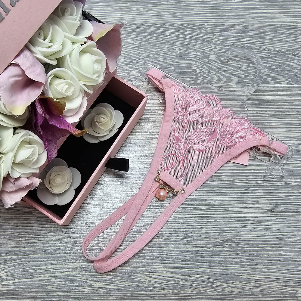 Kreona állító pántos RÓZSASZÍN csipke NYITOTT (Lyukas) TANGA