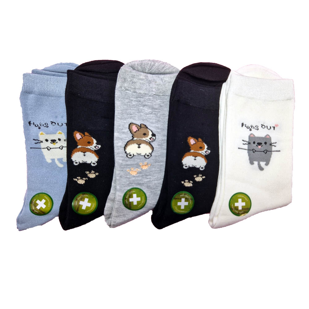 1 csomag 5 pár vegyes színű mintás zoknit tartalmaz.