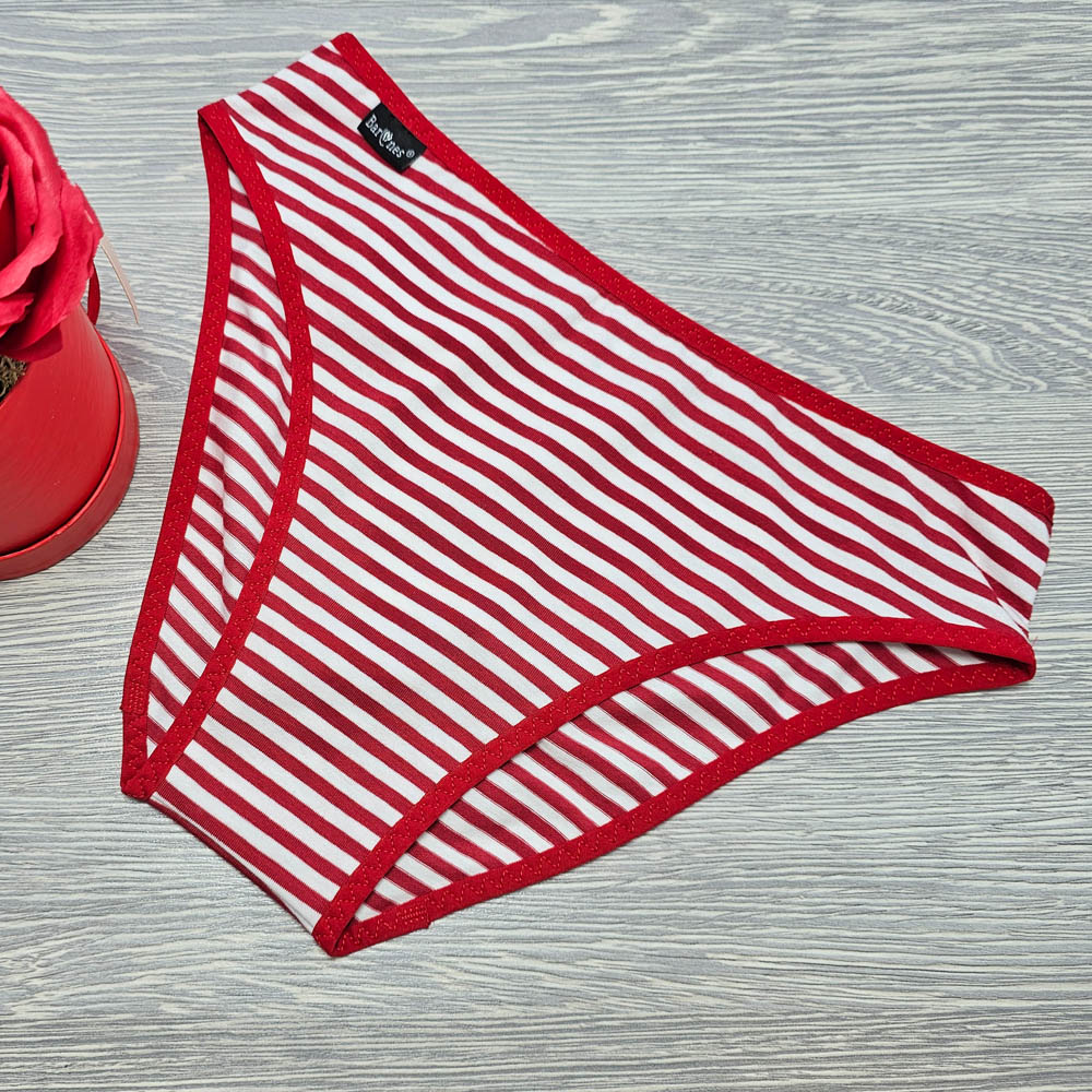 Barones bikini fazonú pamut női bugyi piros-fehér keskeny csíkos