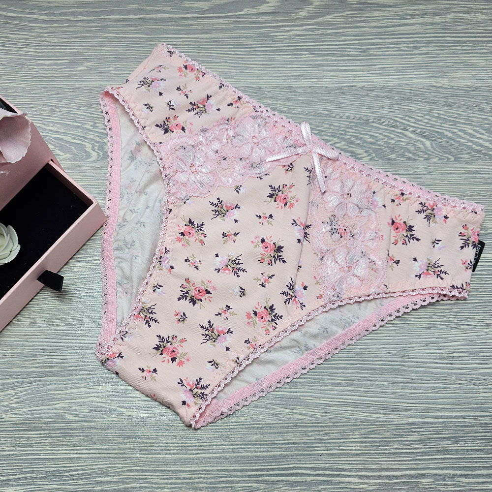 Barones normál bugyi széles oldalú csipke díszítéssel rózsaszín virág mintás