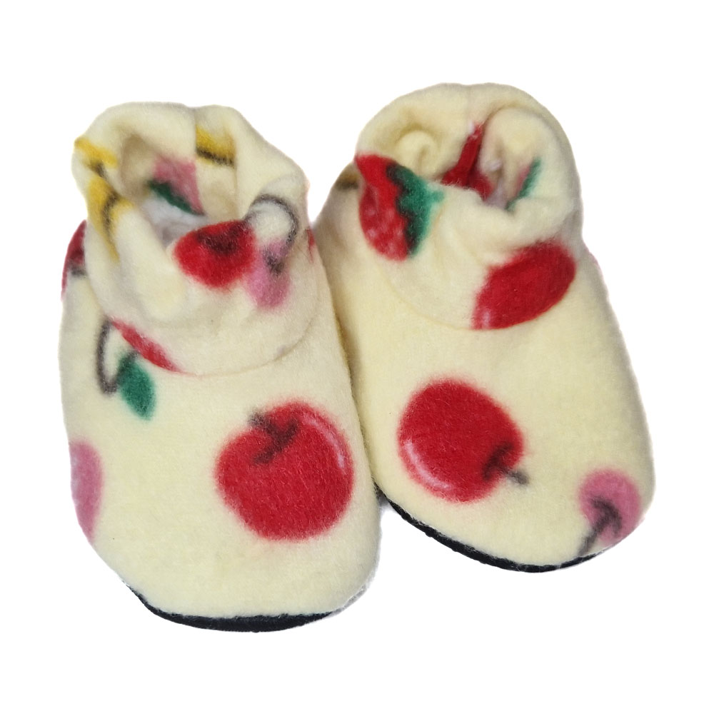 Csúszásgátlós szivacsos puha talppal és belül szőrős béléssel ellátott belebújós bébi cipellő.