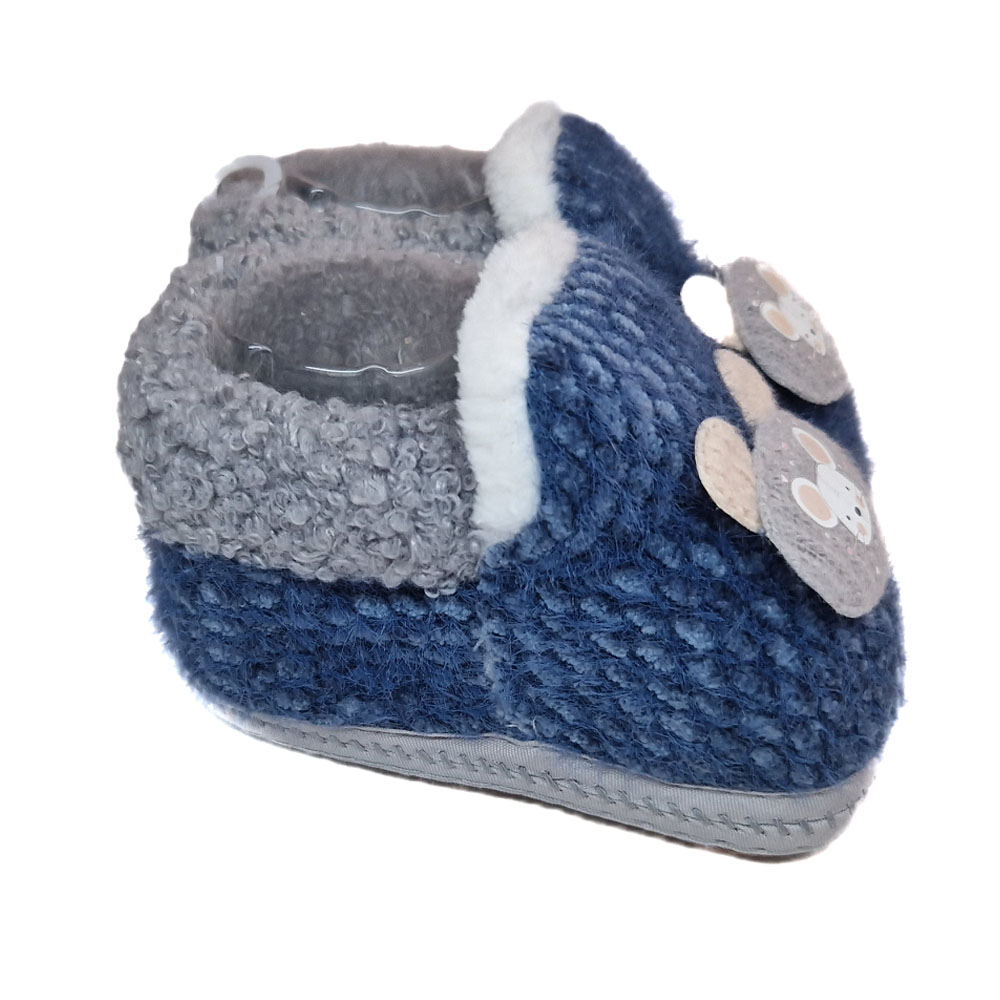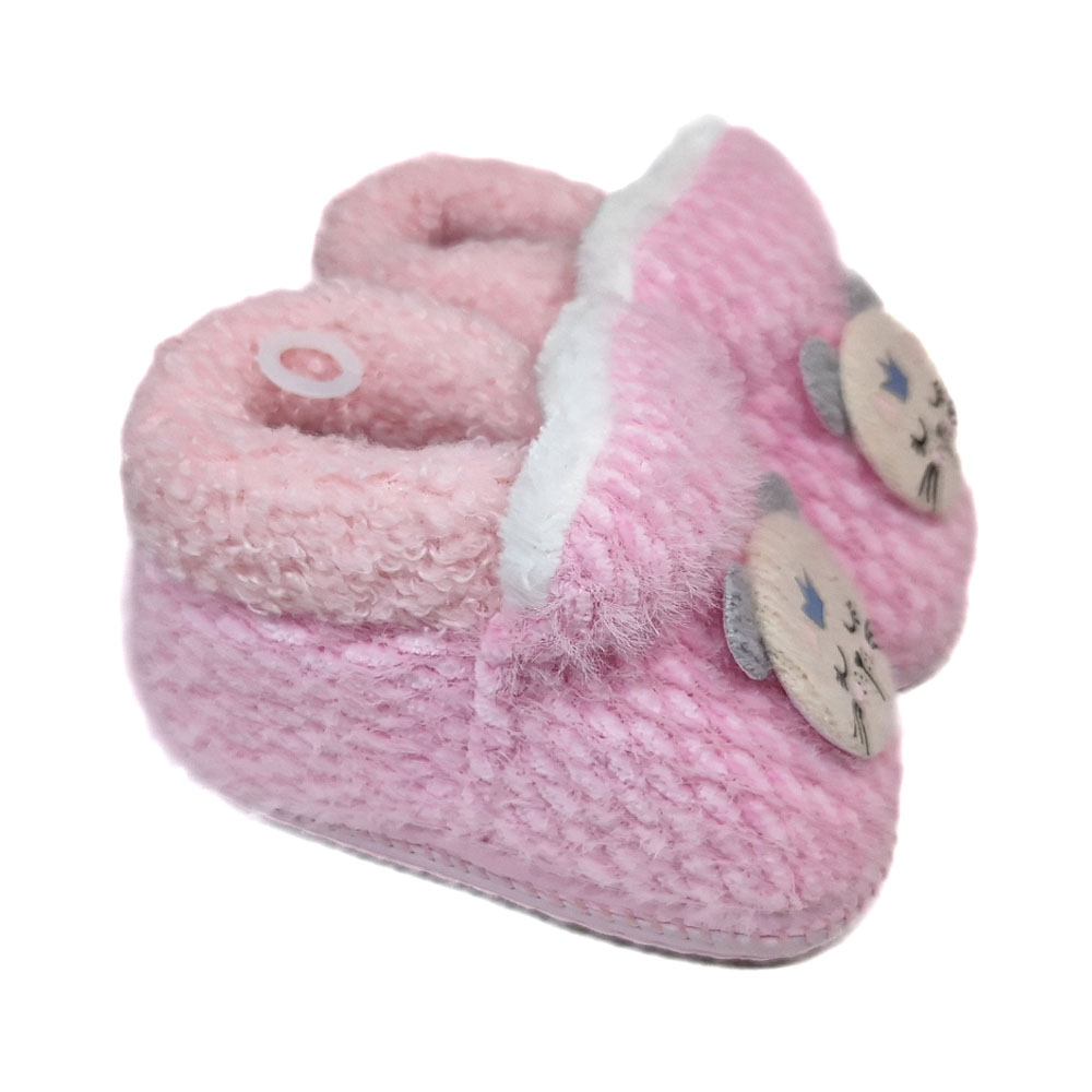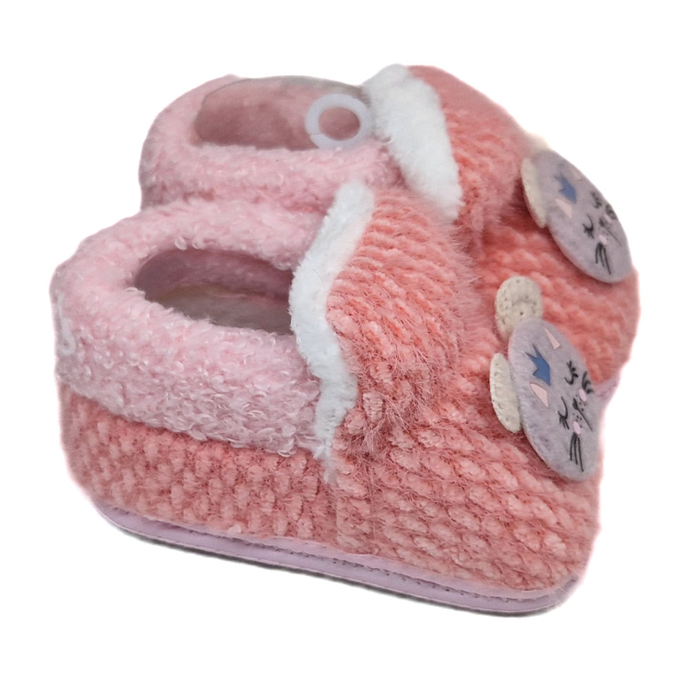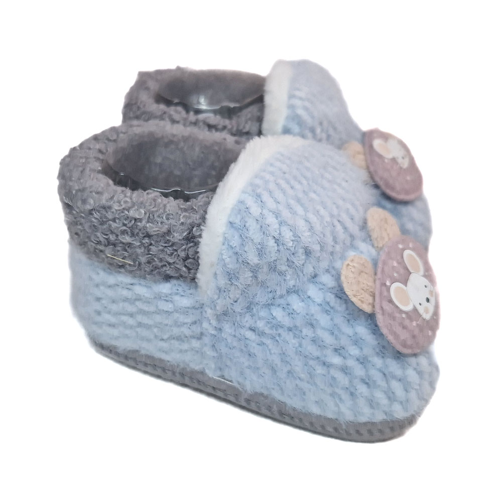 Csúszásgátlós szivacsos talppal és belül szőrős béléssel ellátott belebújós bébi cipellő.