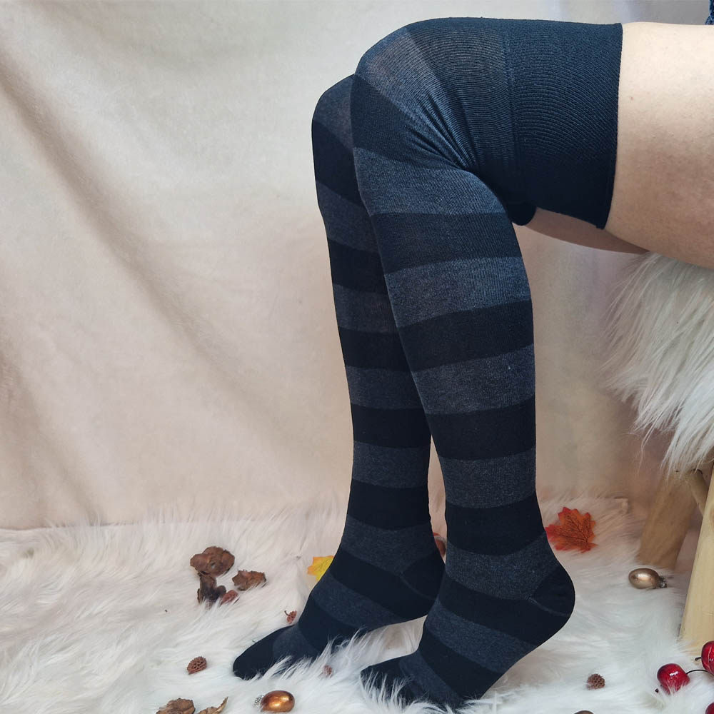 Csíkos combzokni FEKETE-SÖTÉT SZÜRKE!