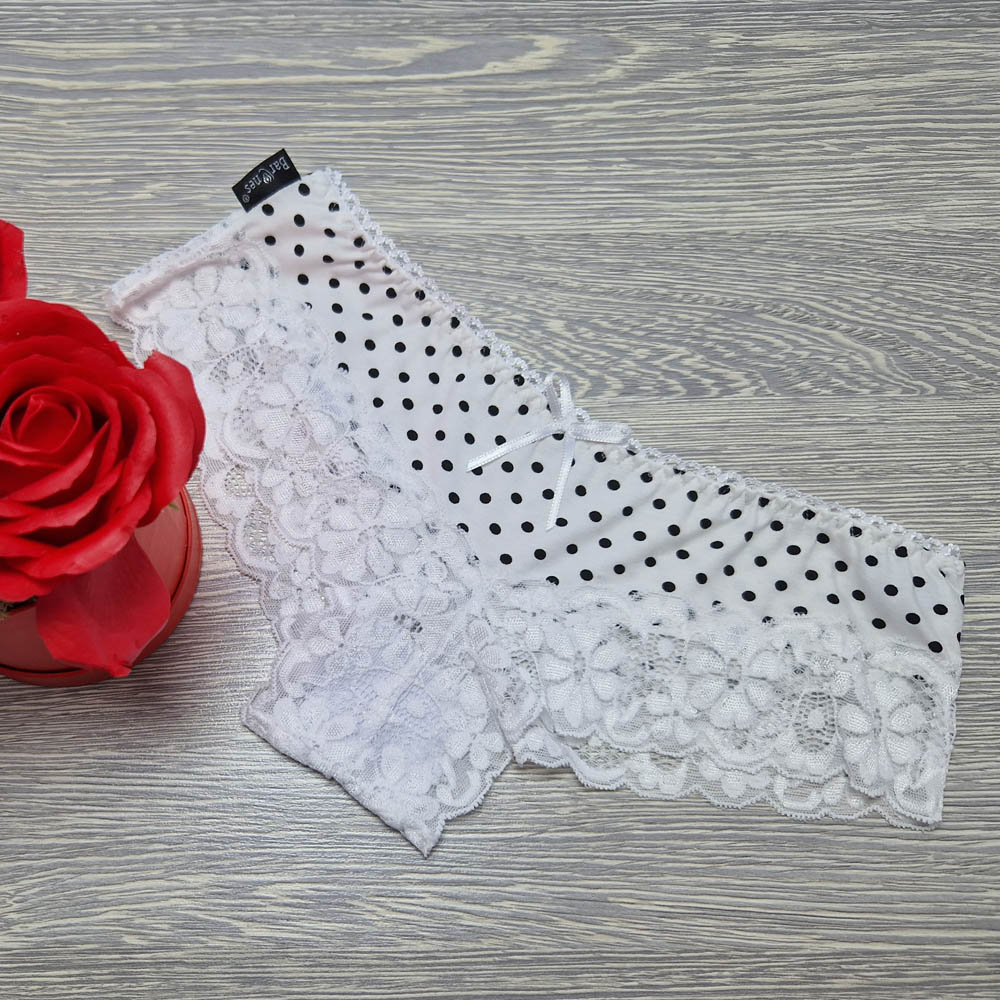 Csipke-pamut brazil csípőtanga FEHÉR-FEKETE PÖTTYÖS mintás