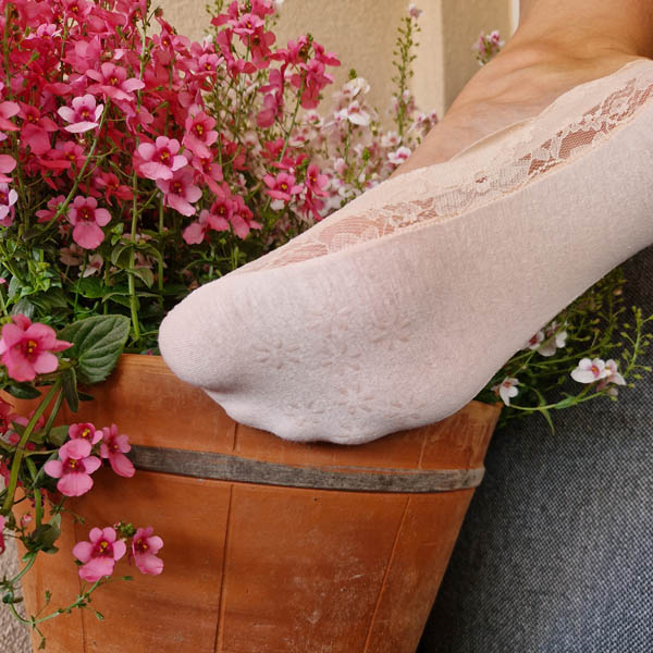 Egyedi technológiával női topánkákba, körömcipőbe gyártott balerina sarkánál szilikonnal, talpa pamut anyagon csúszásgátlóval  rendelkező zokni.