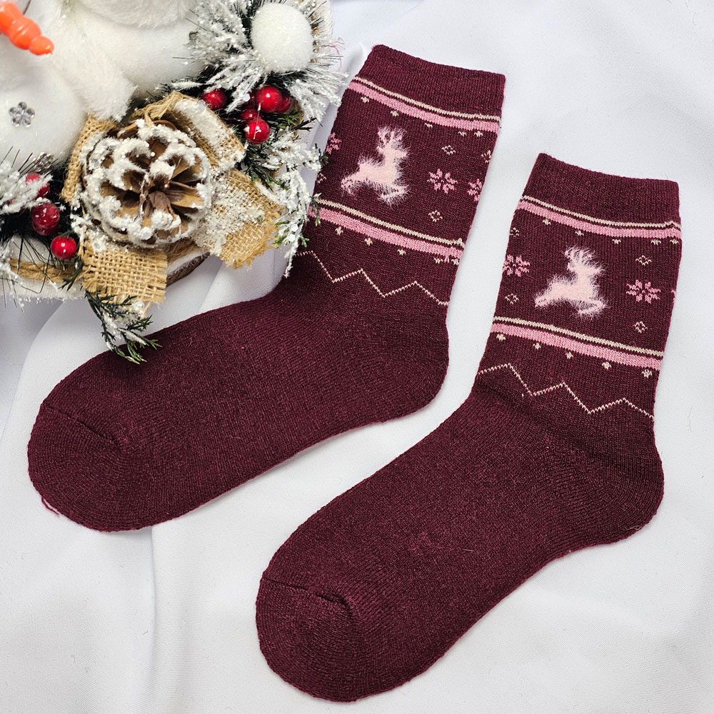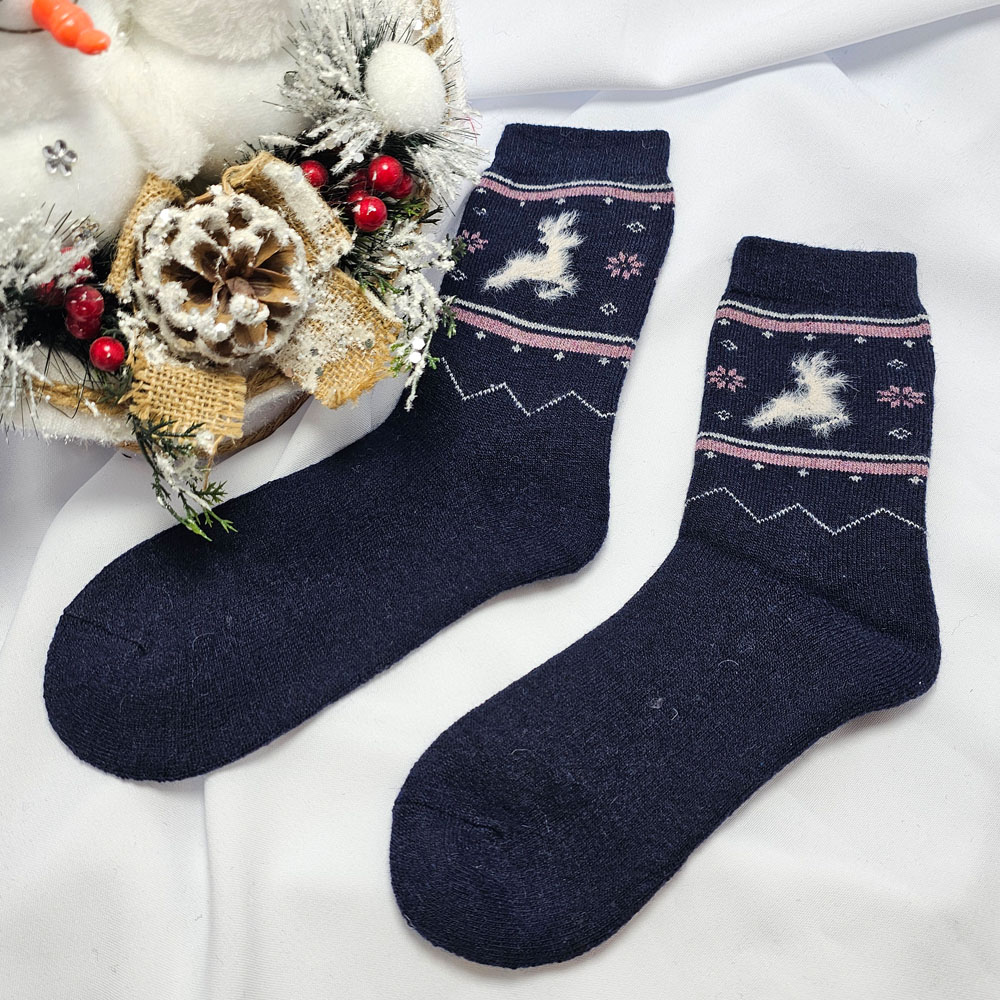 GYAPJÚ VASTAG női zokni rénszarvas mintás