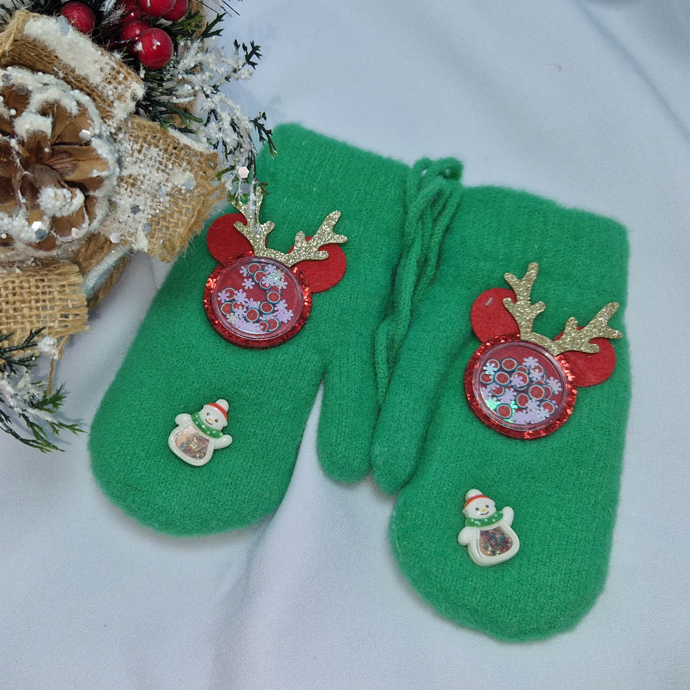 GYEREK Mikulásos-Karácsonyi 1 ujjas kesztyű, élénk zöld