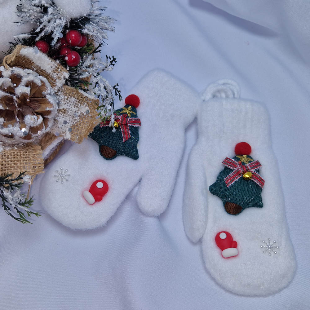 GYEREK Mikulásos-Karácsonyi 1 ujjas kesztyű, fehér-karácsonyfa