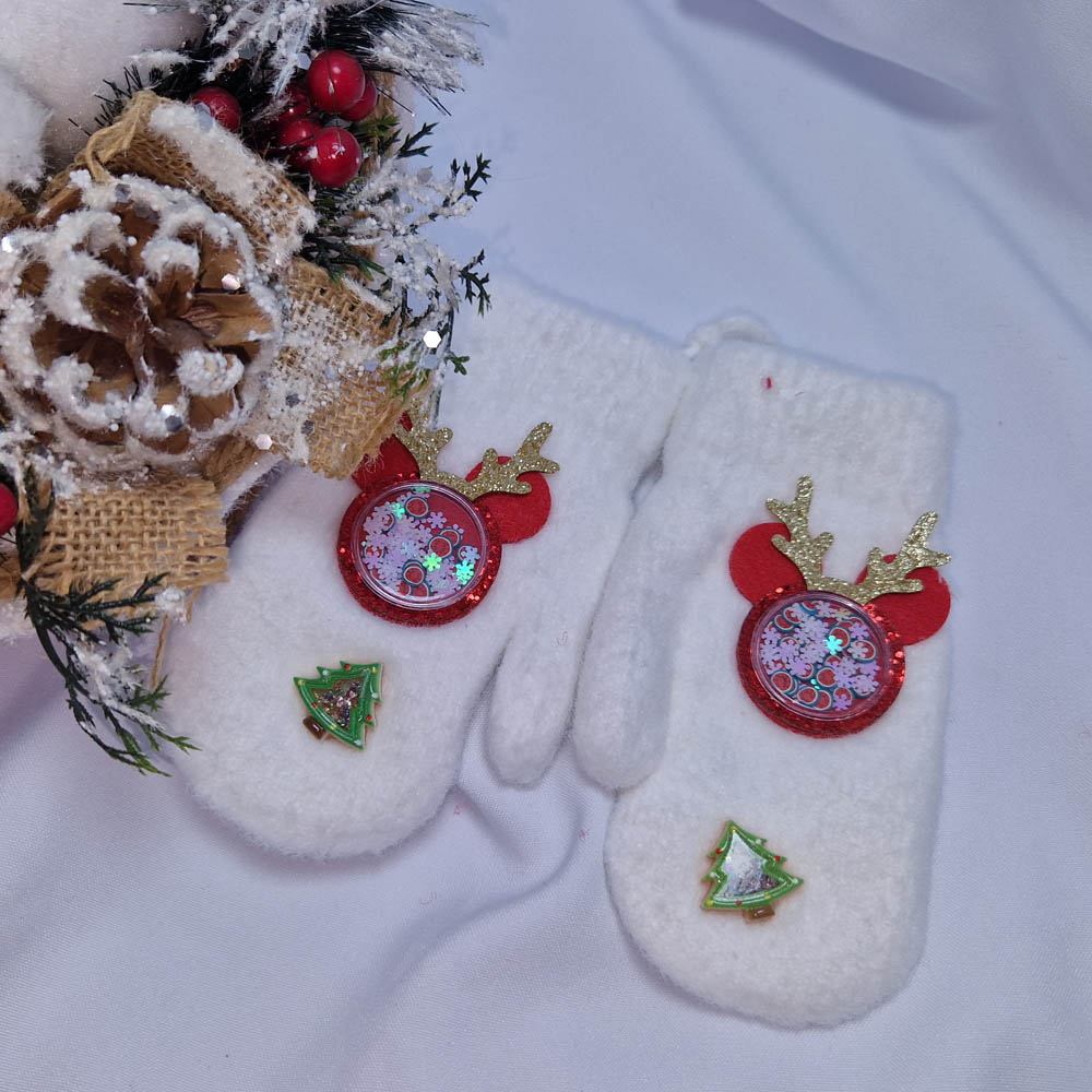 GYEREK Mikulásos-Karácsonyi 1 ujjas kesztyű, fehér-rénszarvas