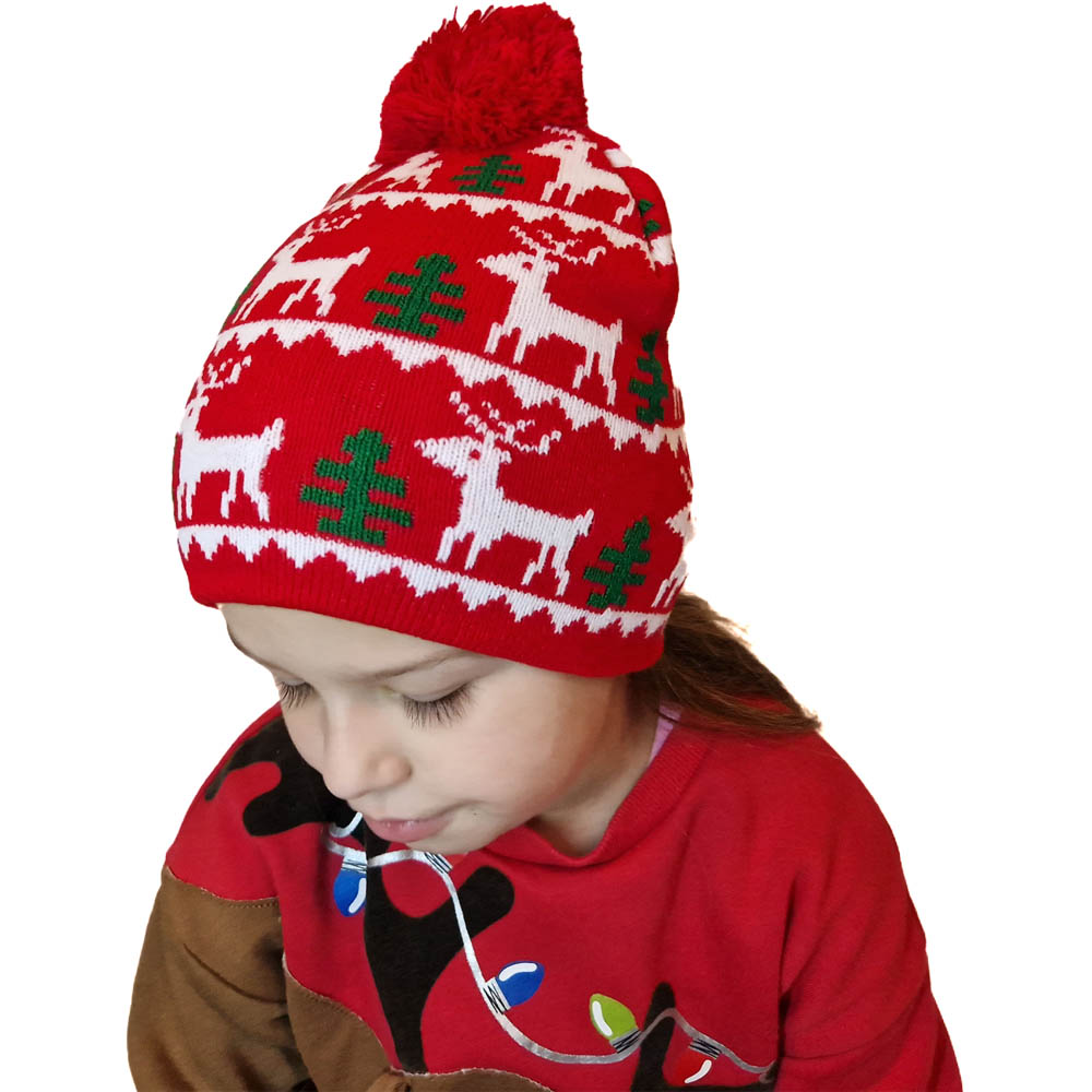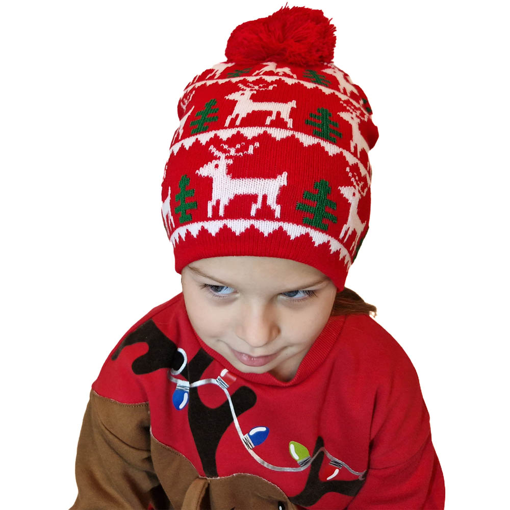 GYEREK Mikulásos-Karácsonyi SAPKA rénszarvas mintás piros