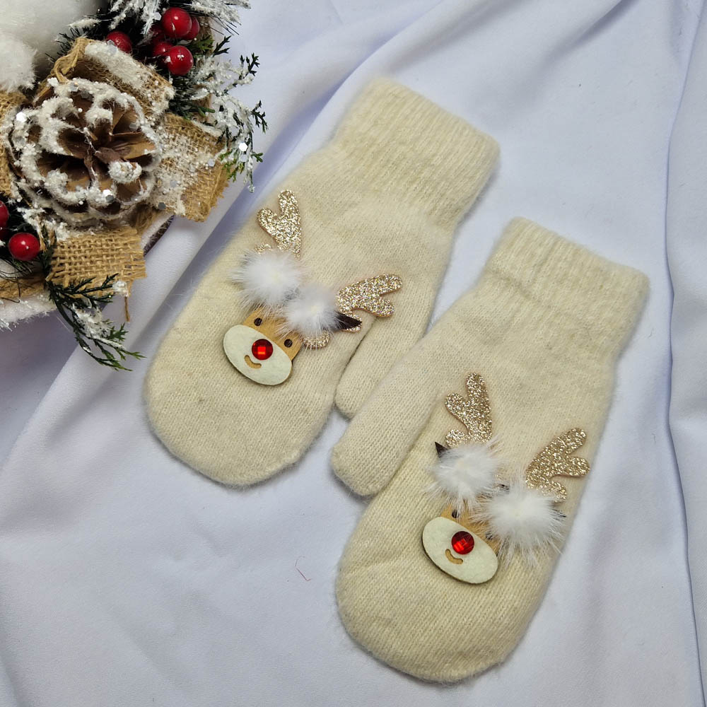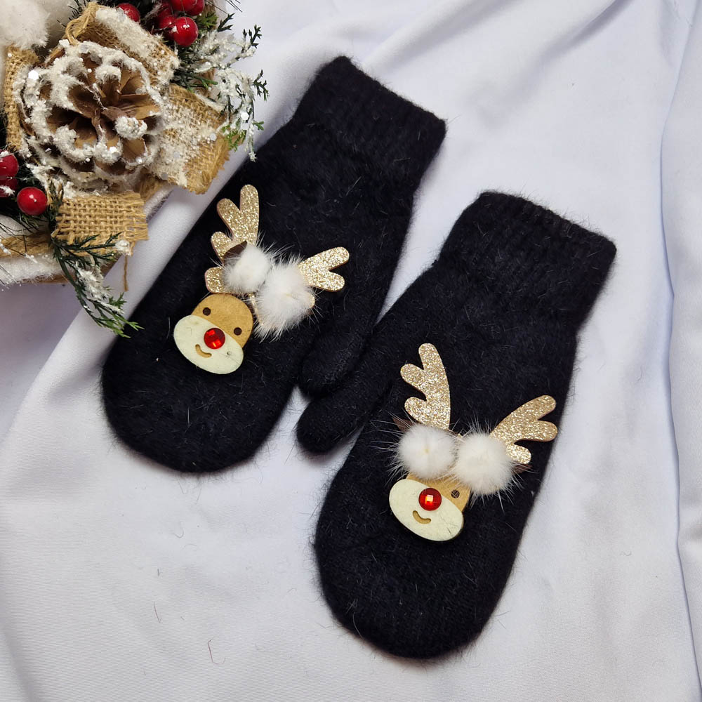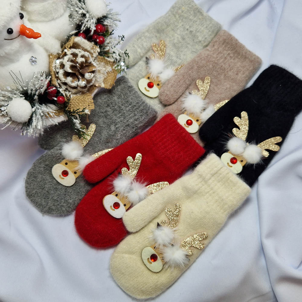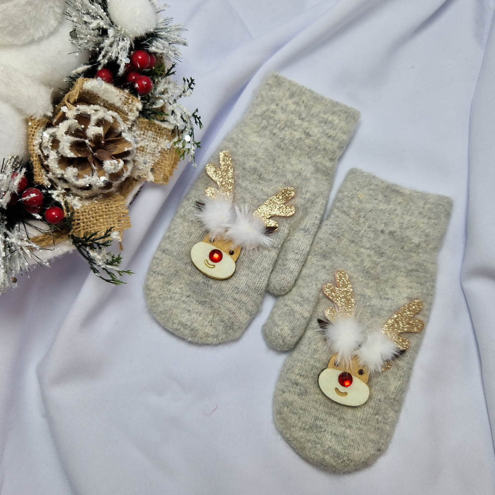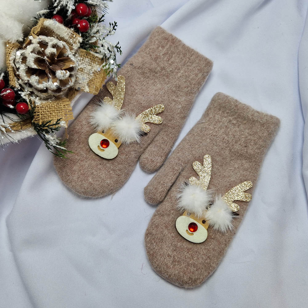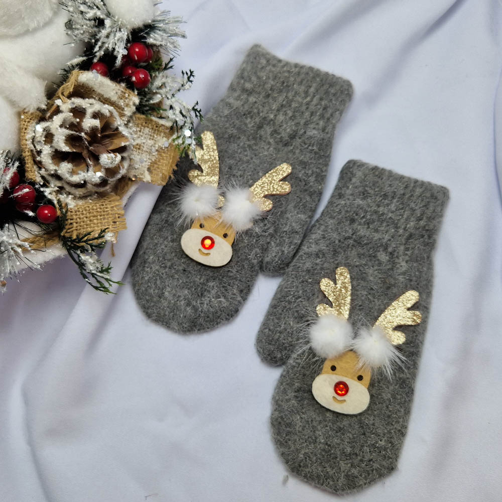 Karácsonyi-Mikulásos 1 ujjas rénszarvas mintás kesztyű