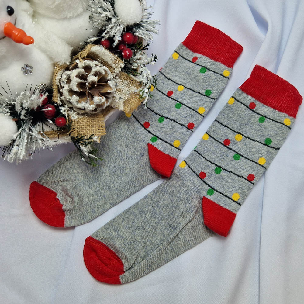 Karácsonyi-mikulásos zokni égősor mintás szürke