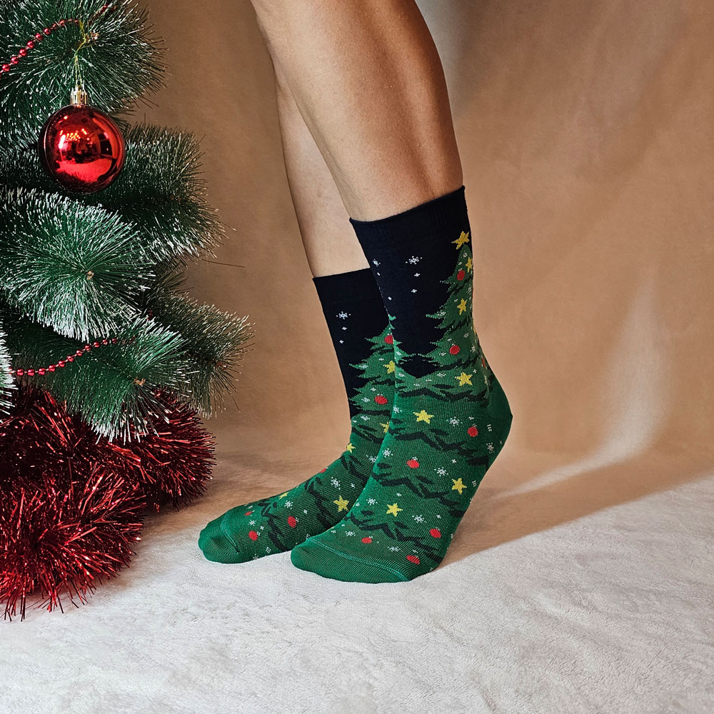 Karácsonyi-mikulásos zokni karácsonyfa mintás. Nem tudod mit vegyél ajándékba? Adunk ötletet! Szerezz egy apró örömet egy hasznos dologgal! Nem kell nagy ajándék egy meglepetéshez! E termék hasznos és meglepetést egyben! Ne feledd a zokni mindig kell!