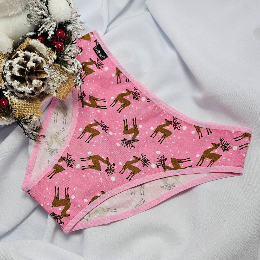 KARÁCSONYI pamut bugyi rózsaszín rénszarvas mintás
