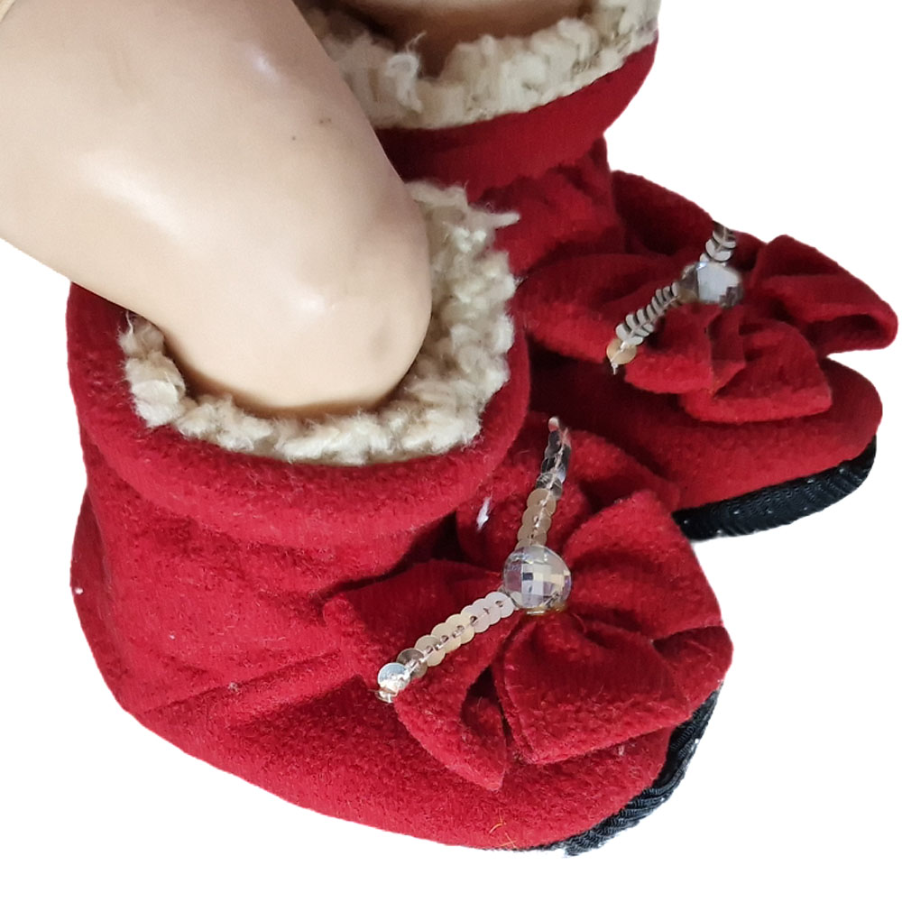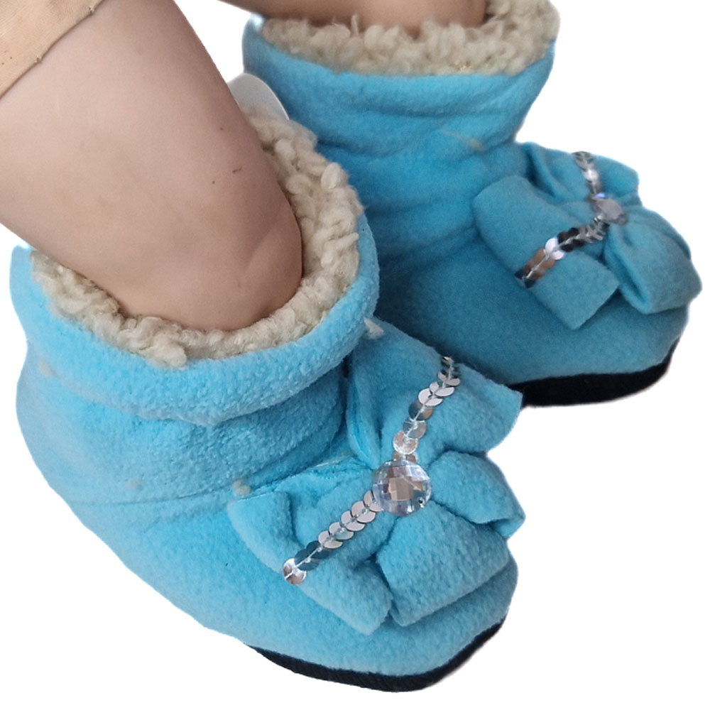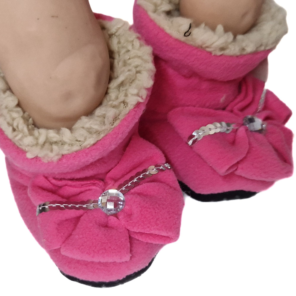 Csúszásgátlós szivacsos puha talppal és belül szőrős béléssel ellátott belebújós bébi cipellő.