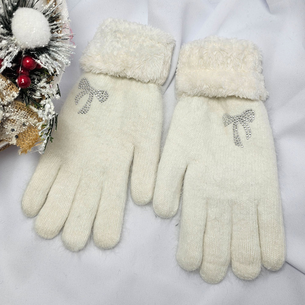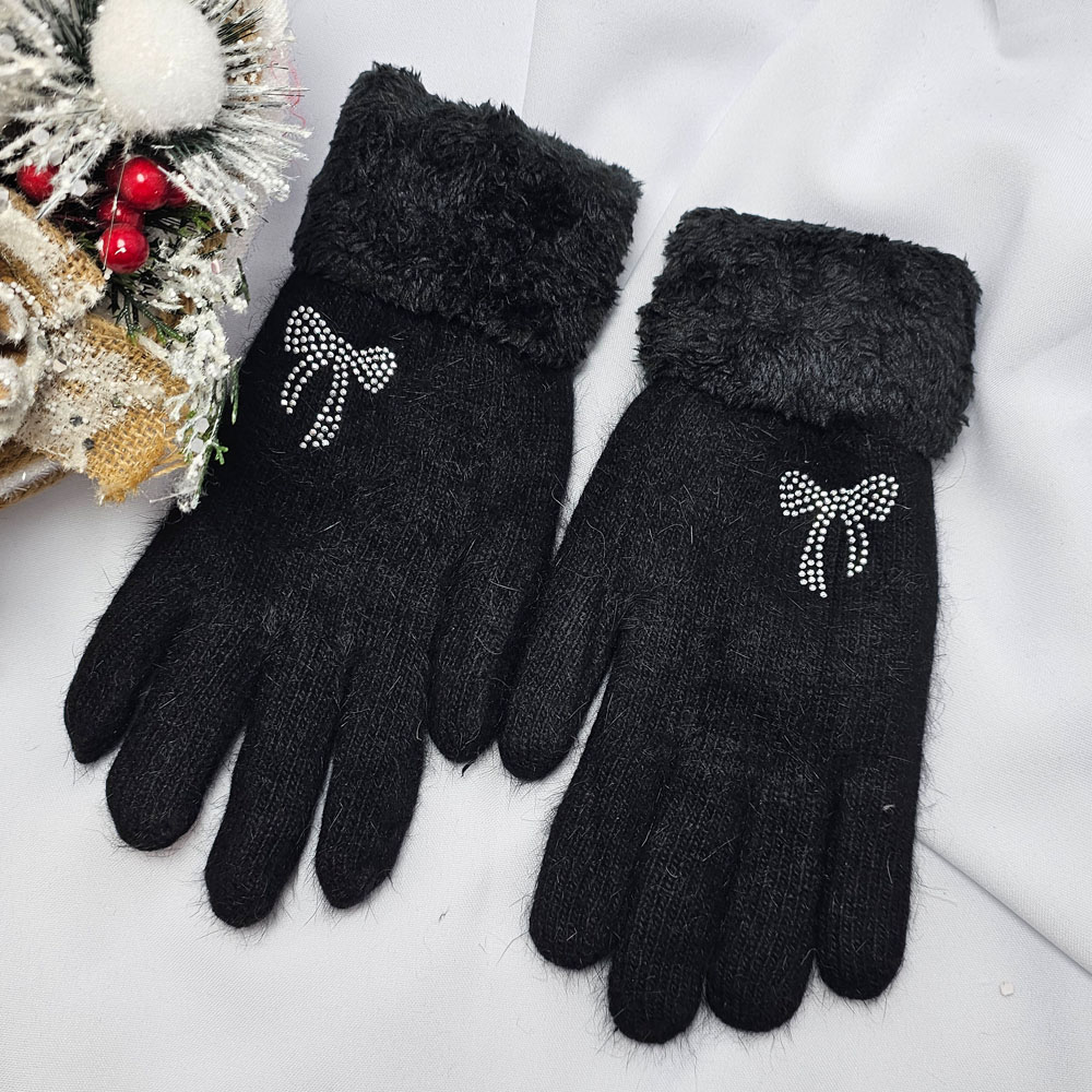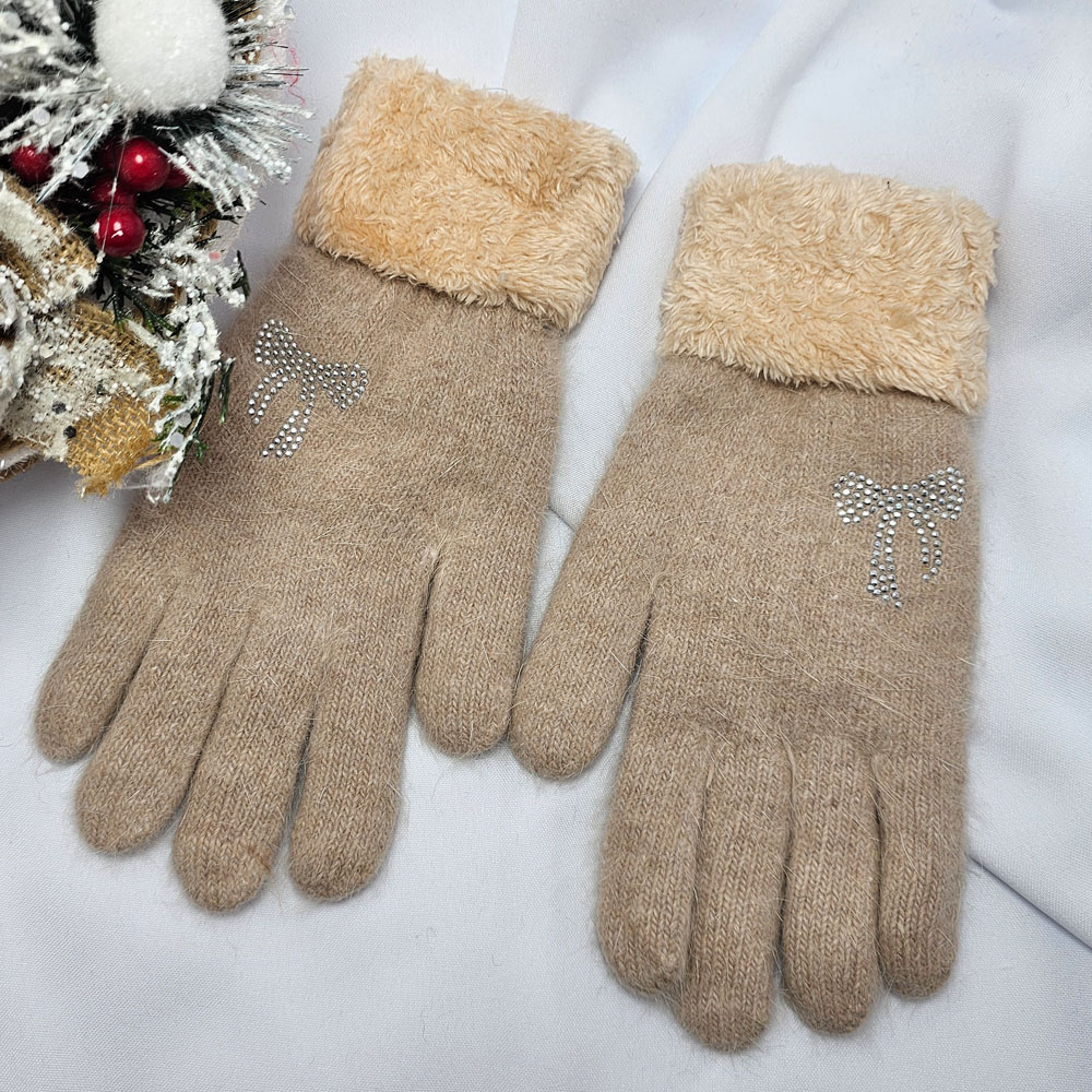 Kötött 5 ujjas masni mintás kesztyű