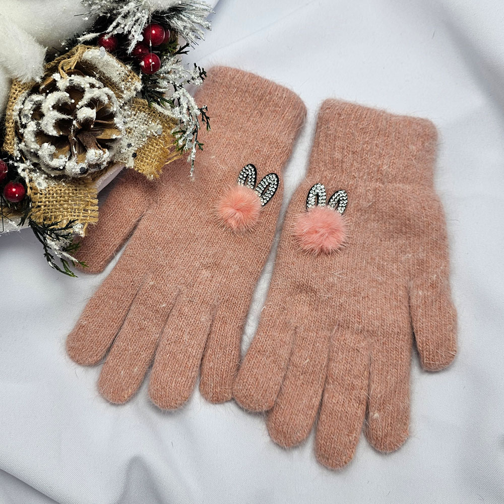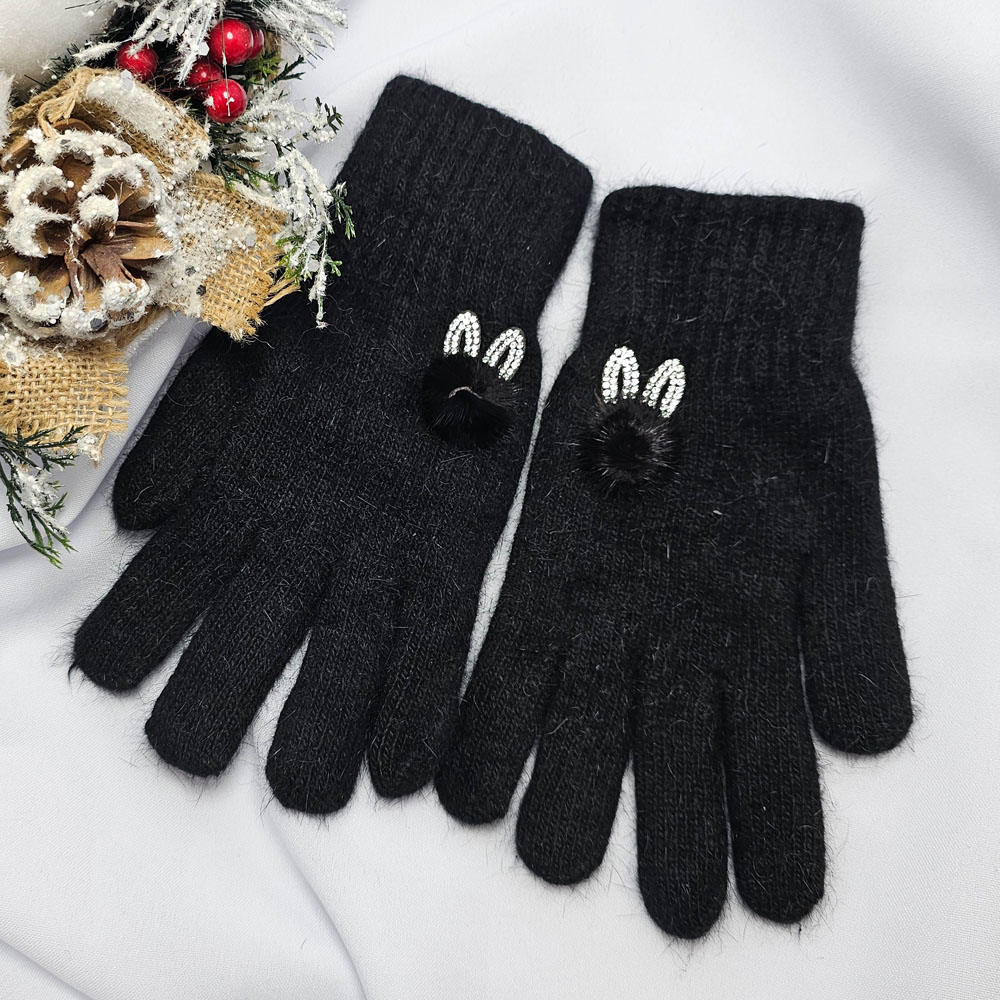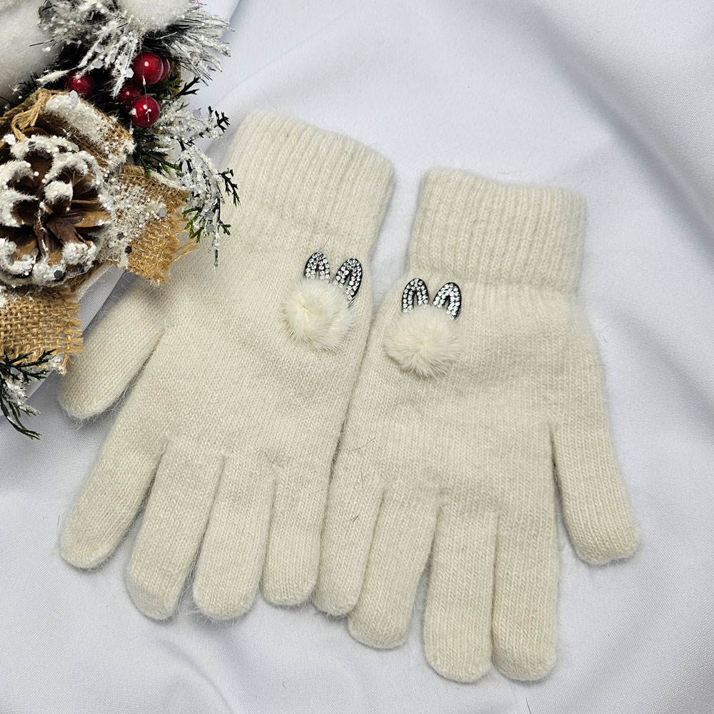 Kötött 5 ujjas nyuszi mintás kesztyű
