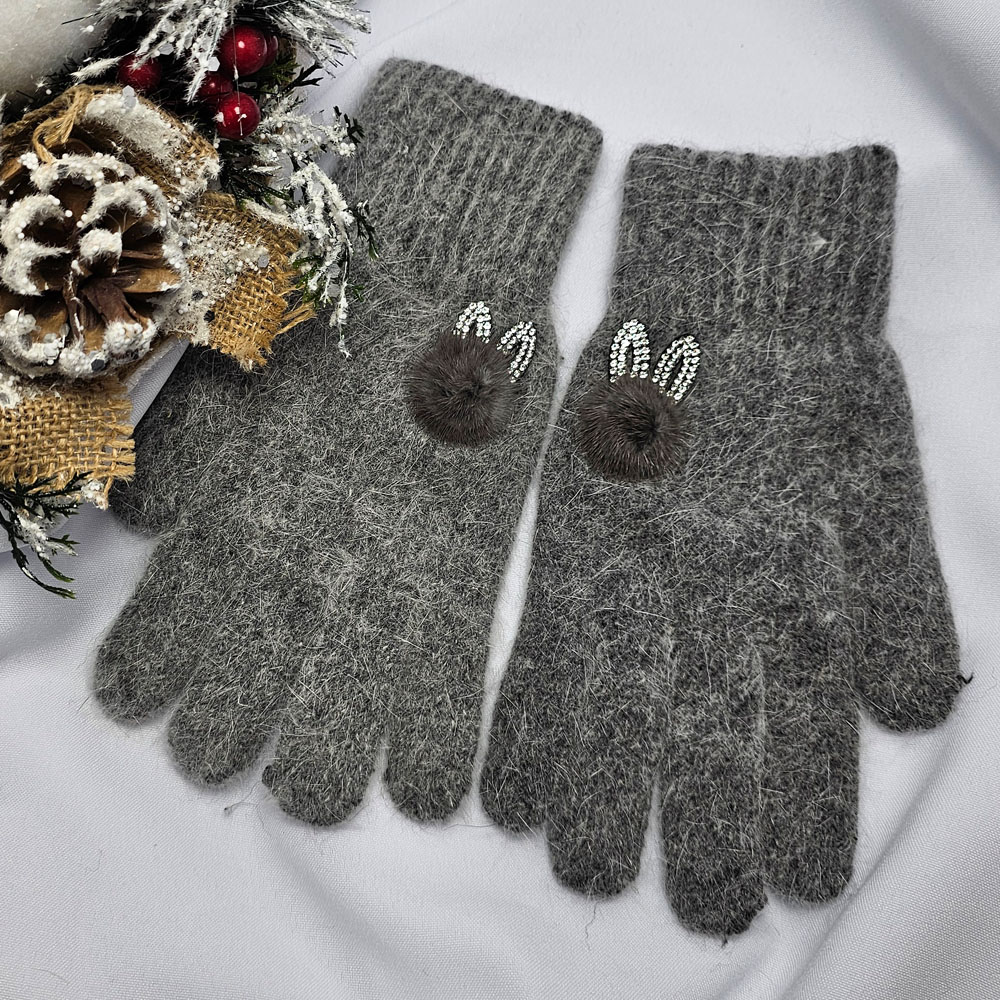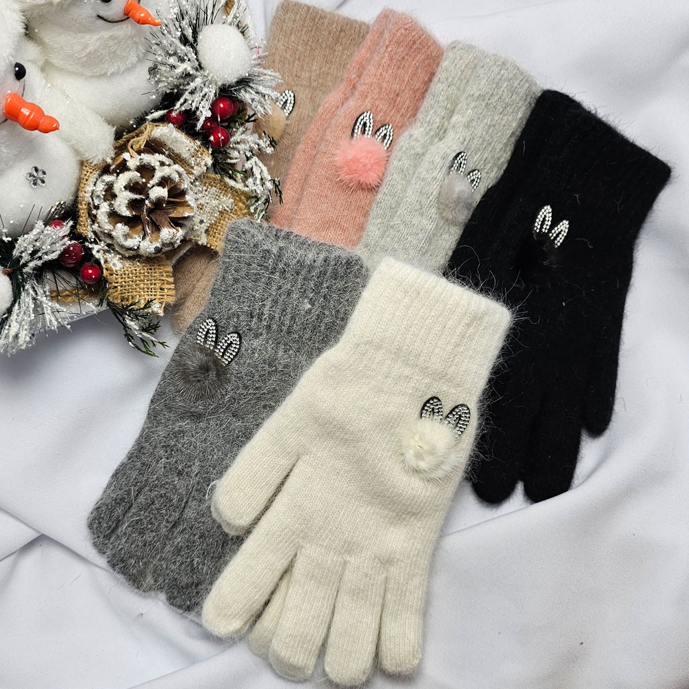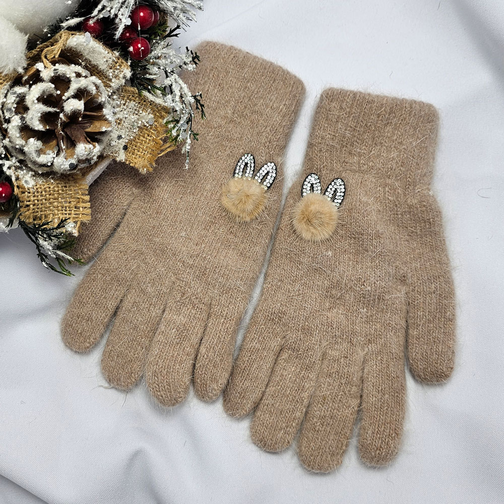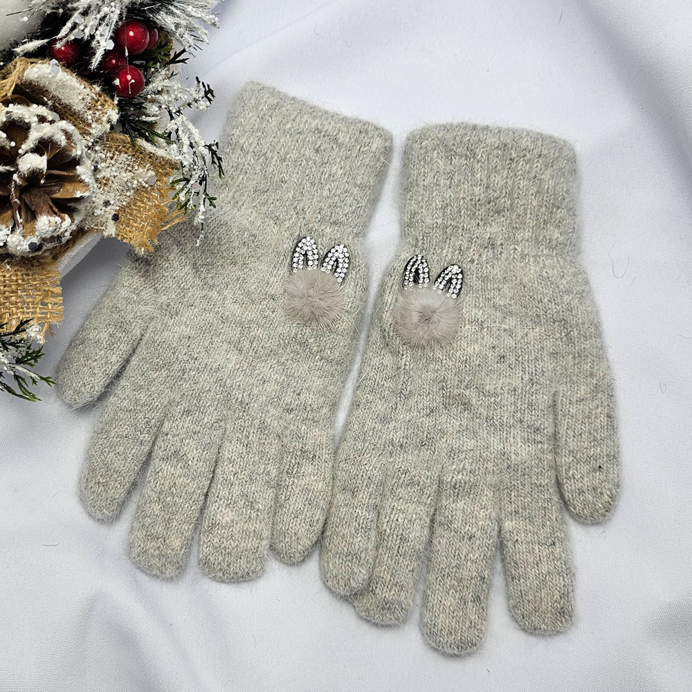 Kötött 5 ujjas nyuszi mintás kesztyű
