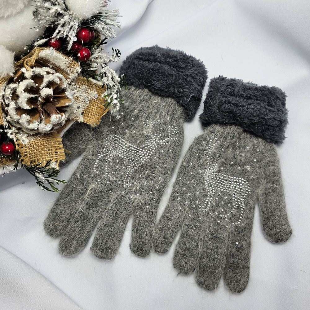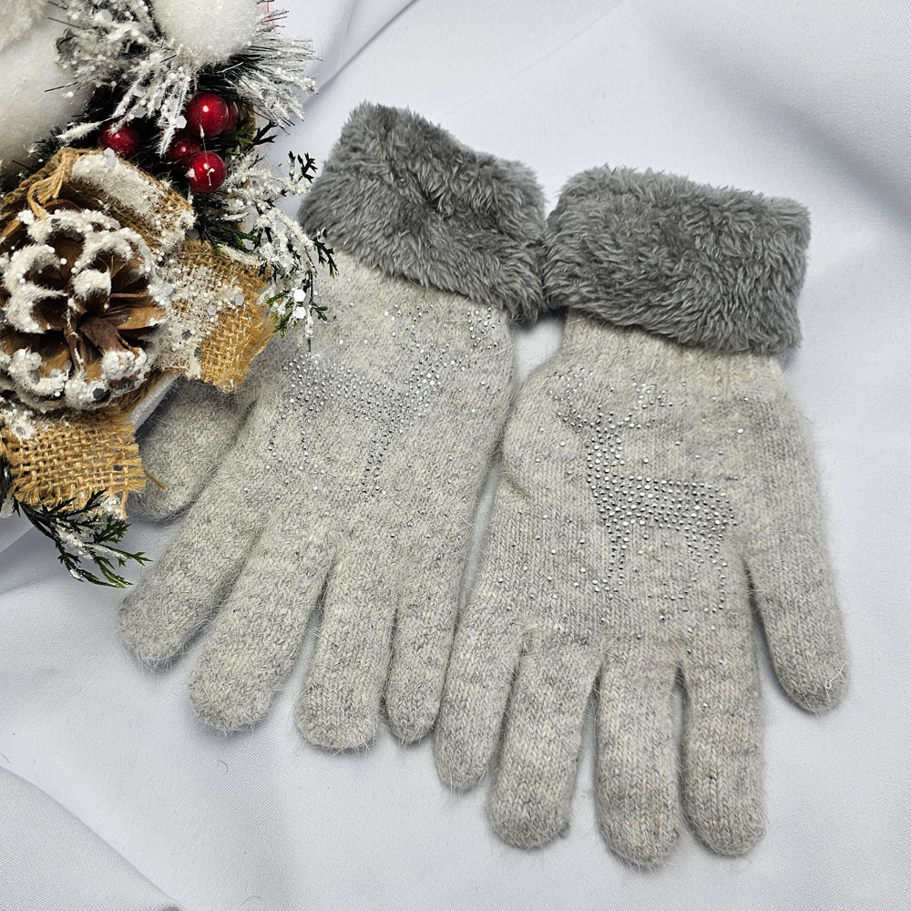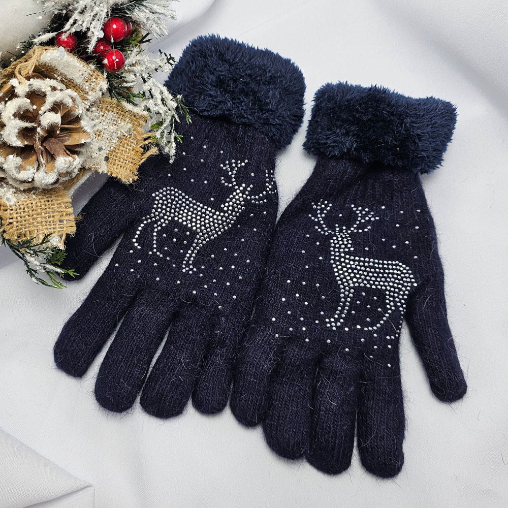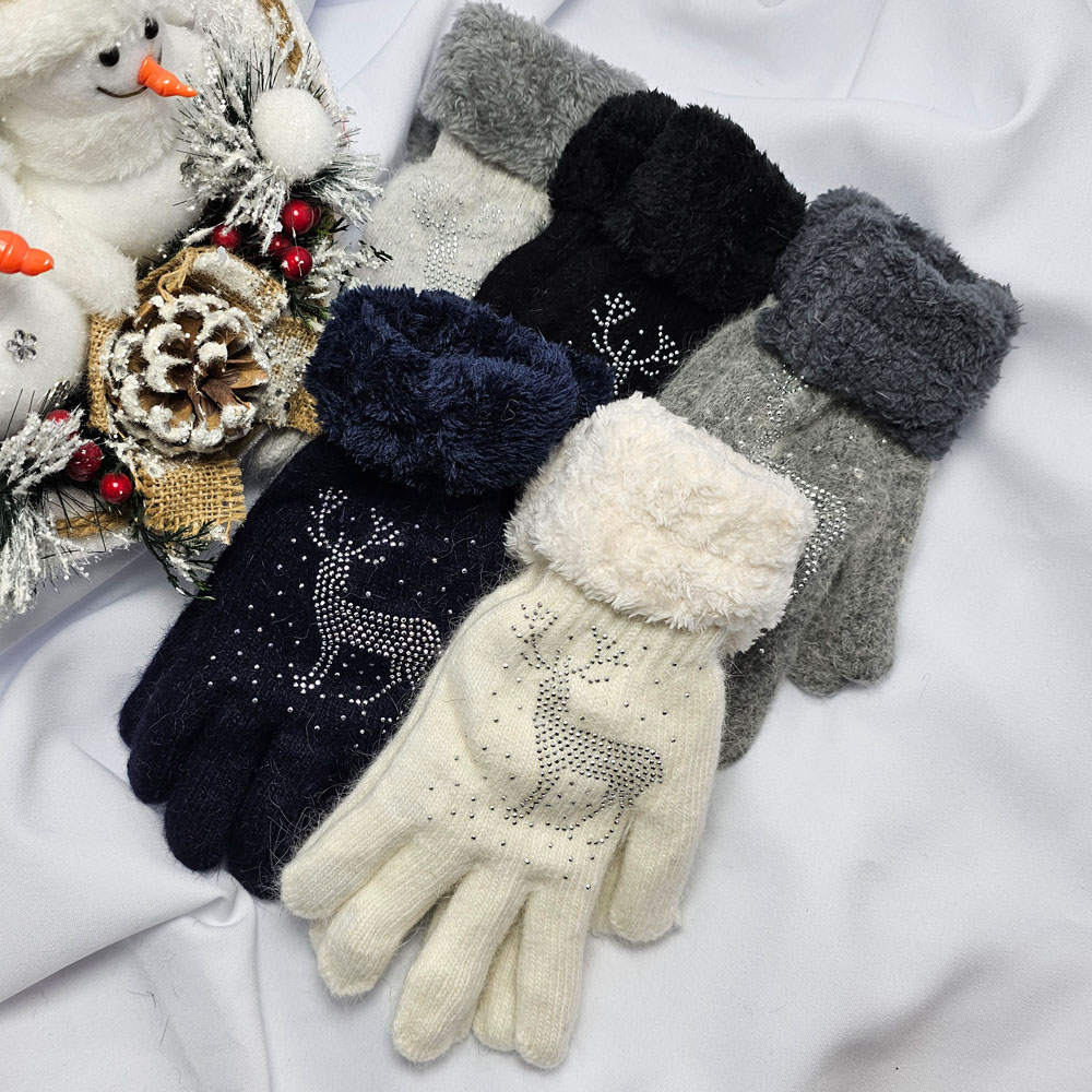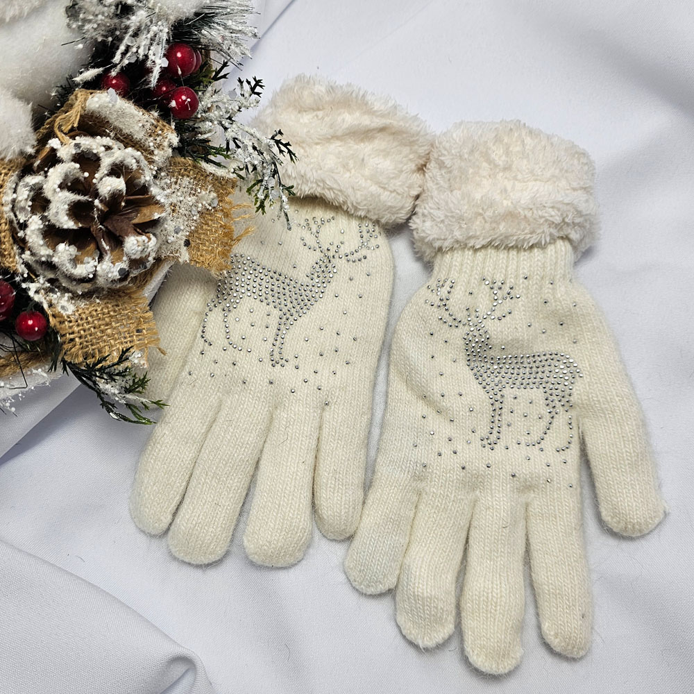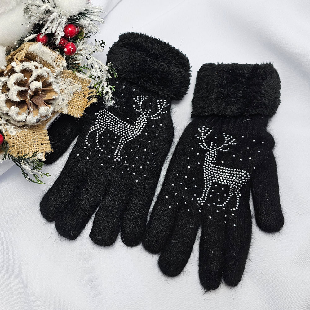 Kötött 5 ujjas rénszarvas mintás kesztyű