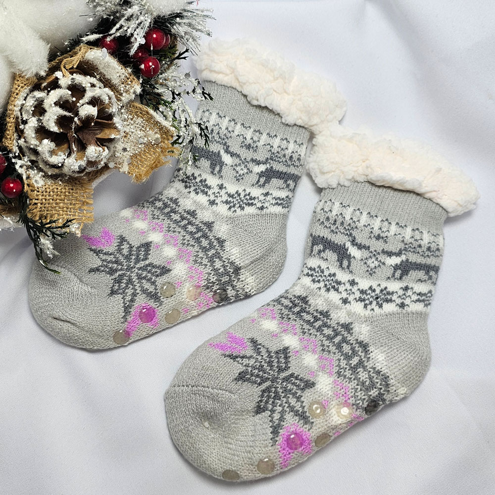 Lány zoknimamusz rénszarvas-hópihés mintával
