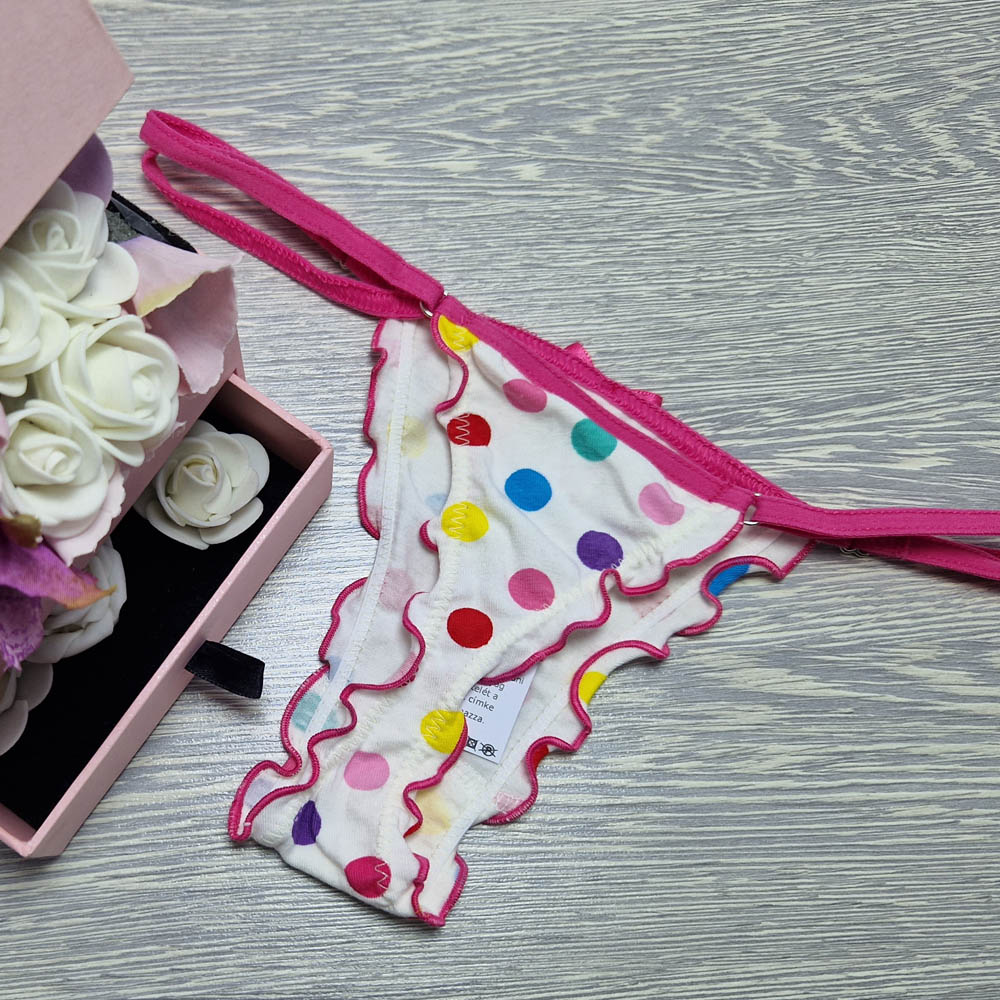 Lucifer állítható pántos PÖTTYÖS MINTÁS pamut TANGA. Magyar készítésű fehérneműk széles választéka egy helyen! Egyméretes állítható pántos mai divatmintás női fehérnemű.