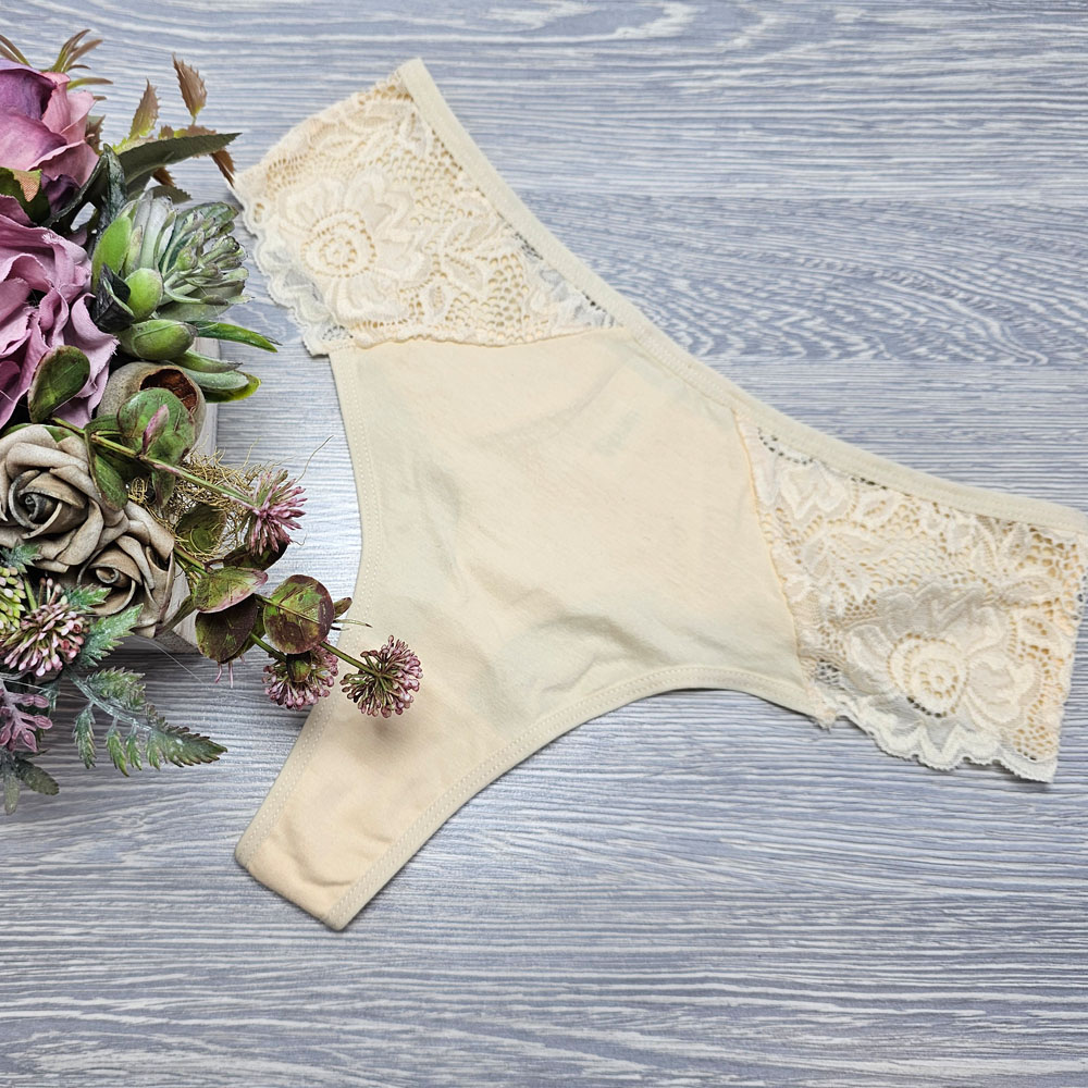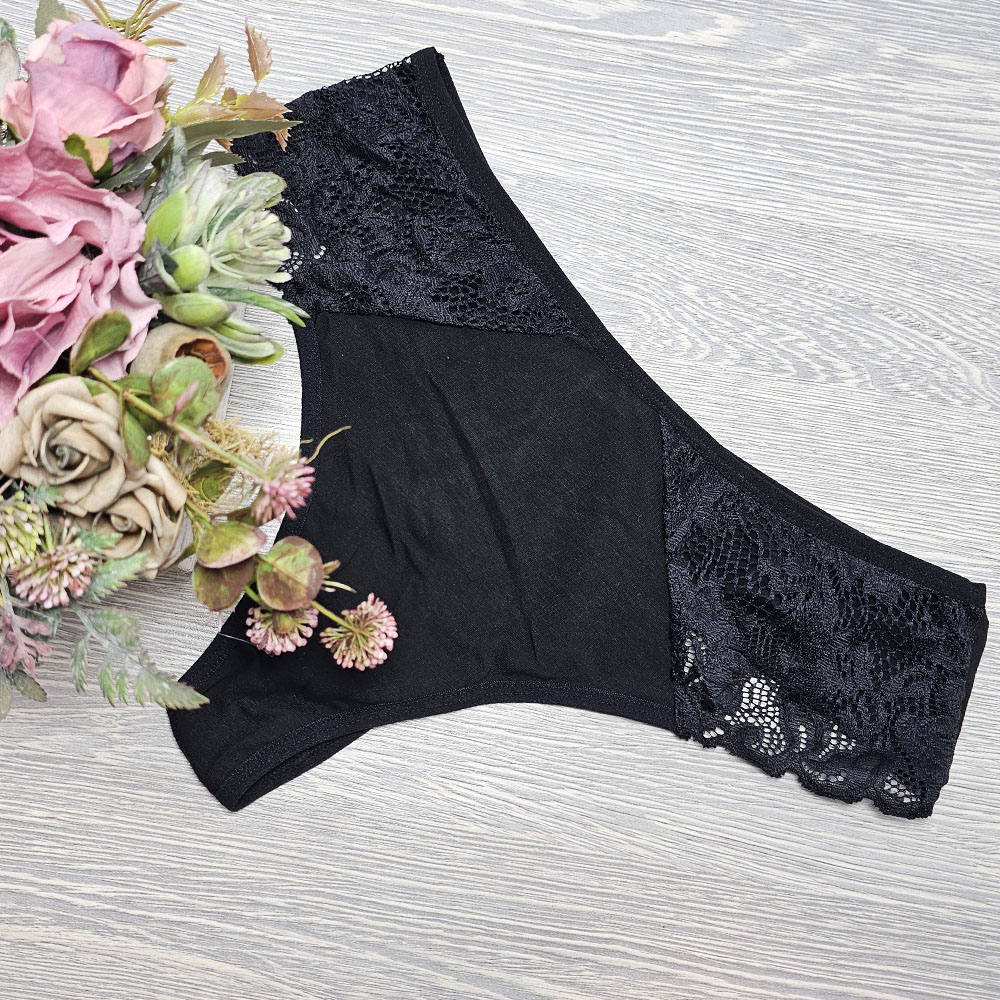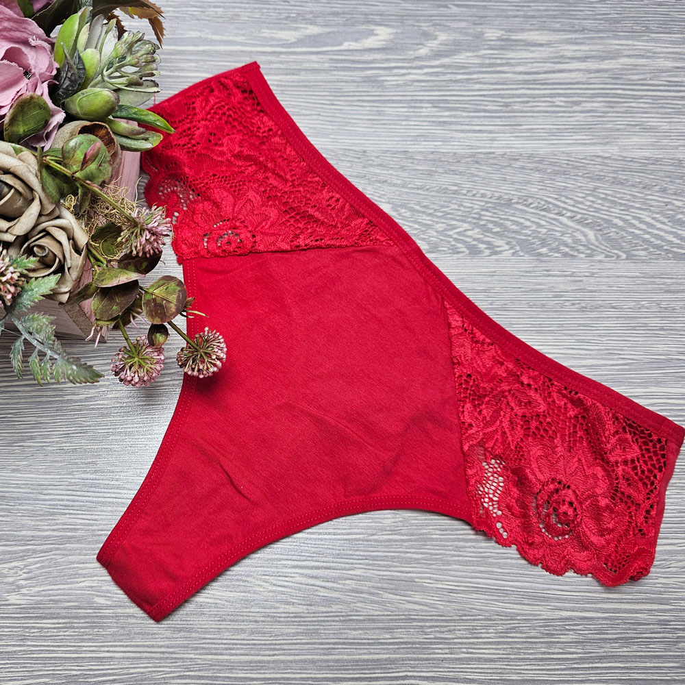 Magas állású, ízléses finom csipkés oldalú tanga. Intim résznél pamut berakással.