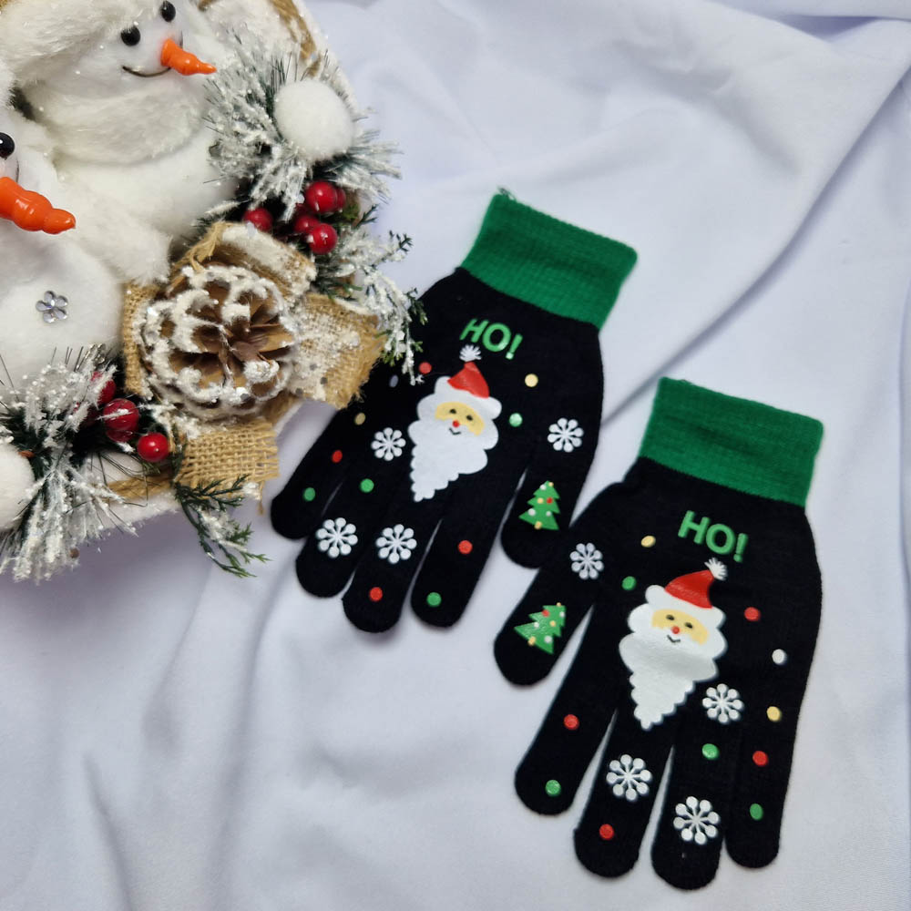 Mikulásos-Karácsonyi 5 ujjas kesztyű érintő képernyőkhöz fekete-zöld-mikulásos mintás.