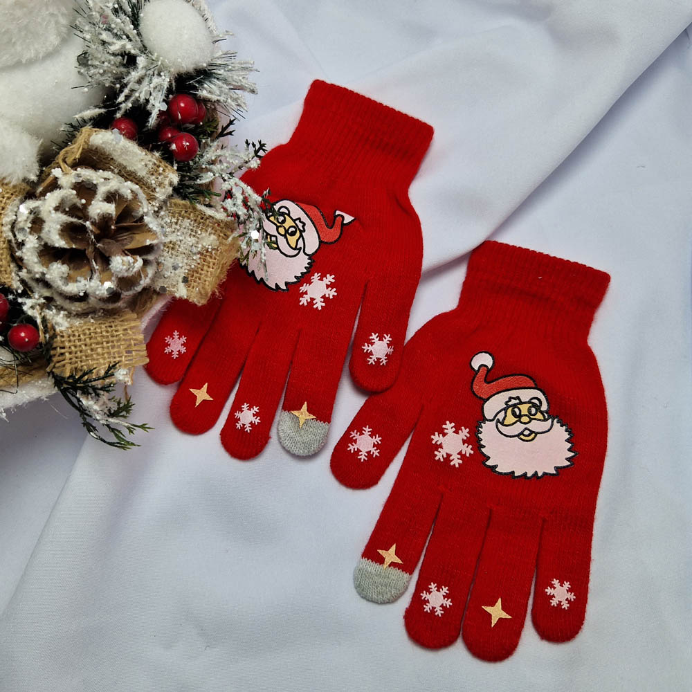 Mikulásos-Karácsonyi 5 ujjas kesztyű érintő képernyőkhöz piros-mikulásos mintás.