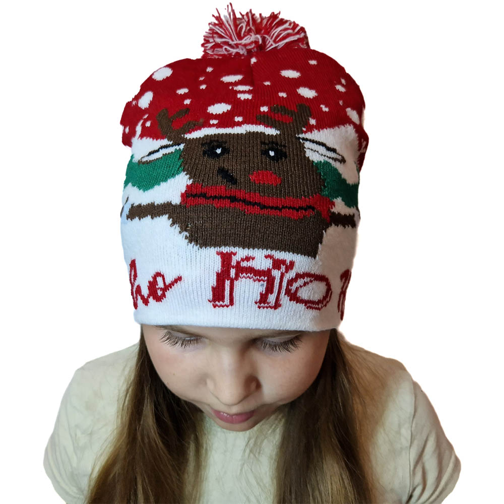 Téli dupla kötésű közép vastag mikulás-karácsony mintás sapka.