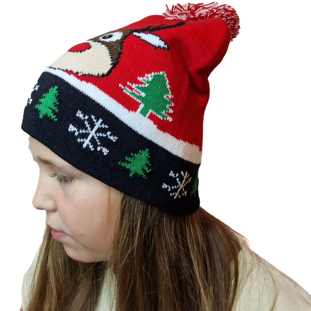 Téli dupla kötésű közép vastag mikulás-karácsony mintás sapka.