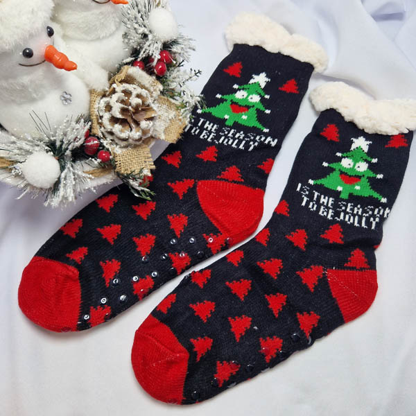 MIKULÁSOS-KARÁCSONYI szobai FÉRFI zokni mamusz karácsonyfa minta