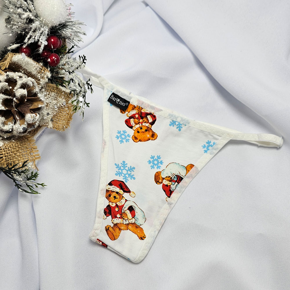 Mikulásos-Karácsonyi TANGA fehér macis