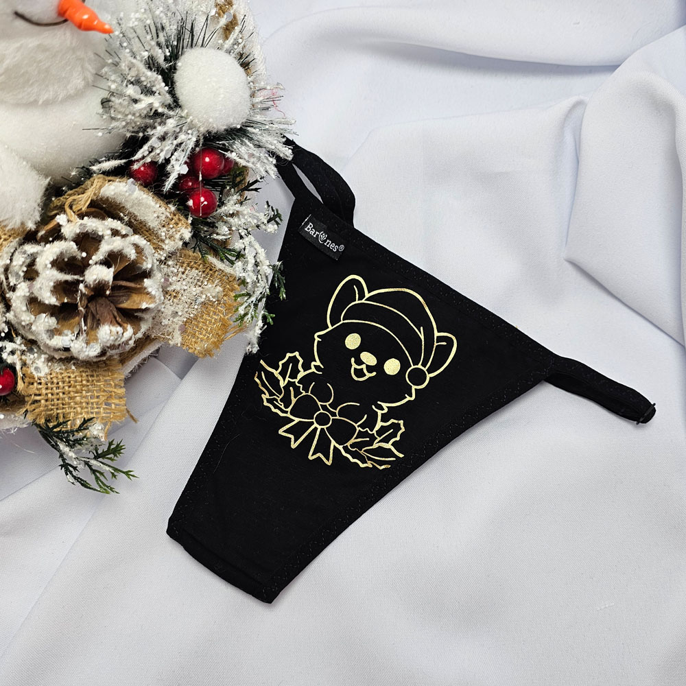 Mikulásos-Karácsonyi TANGA fekete cicás. Magyar készítésű fehérneműk széles választéka egy helyen! Egyméretes állítható pántos mai divatmintás női fehérnemű.