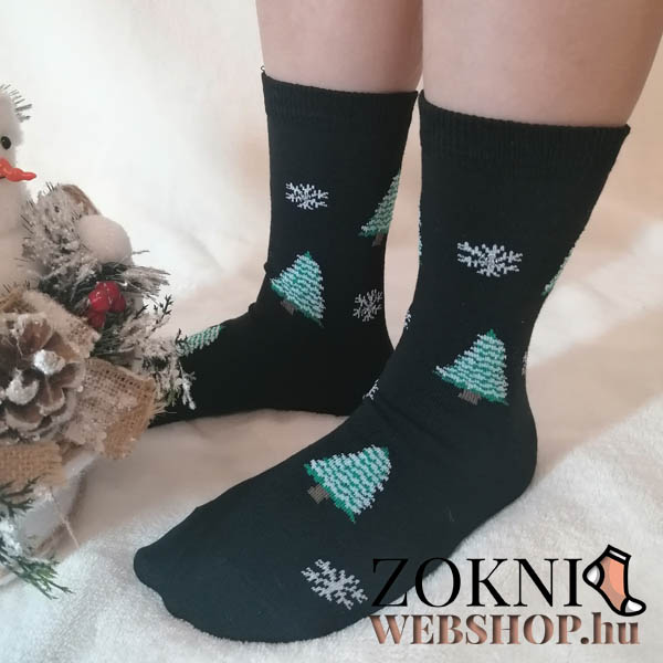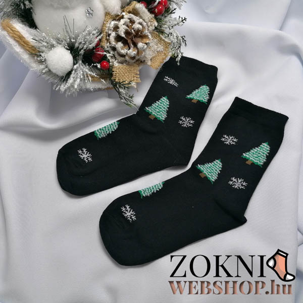 Mikulásos zokni KARÁCSONYFA mintás, fekete színben!