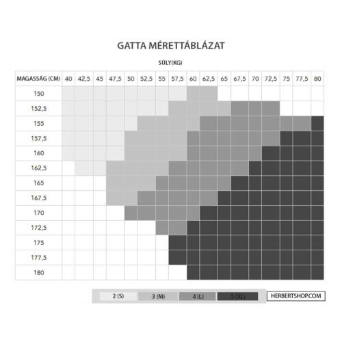 | Méret | MAGASSÁG(cm) | CSÍPŐ BŐSÉG (cm) | TESTTÖMEG (kg) |