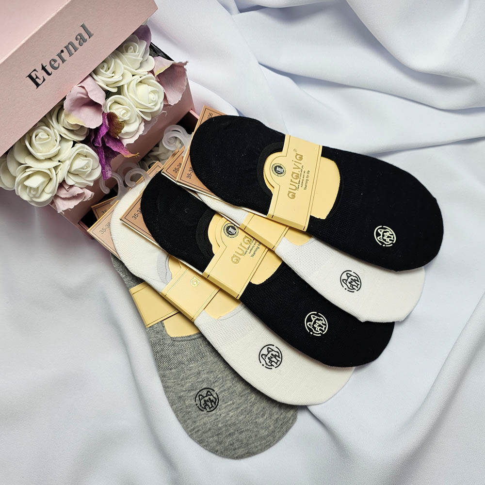 Női balerina zokni cica mintás, szilikon sarokrésszel, 5 pár/cs