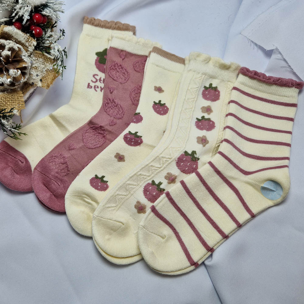 Női gyapjú zokni eper mintás 5 pár/csomag