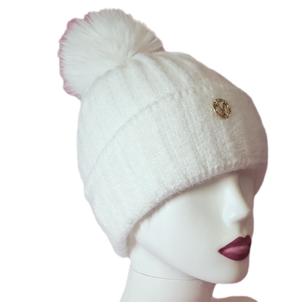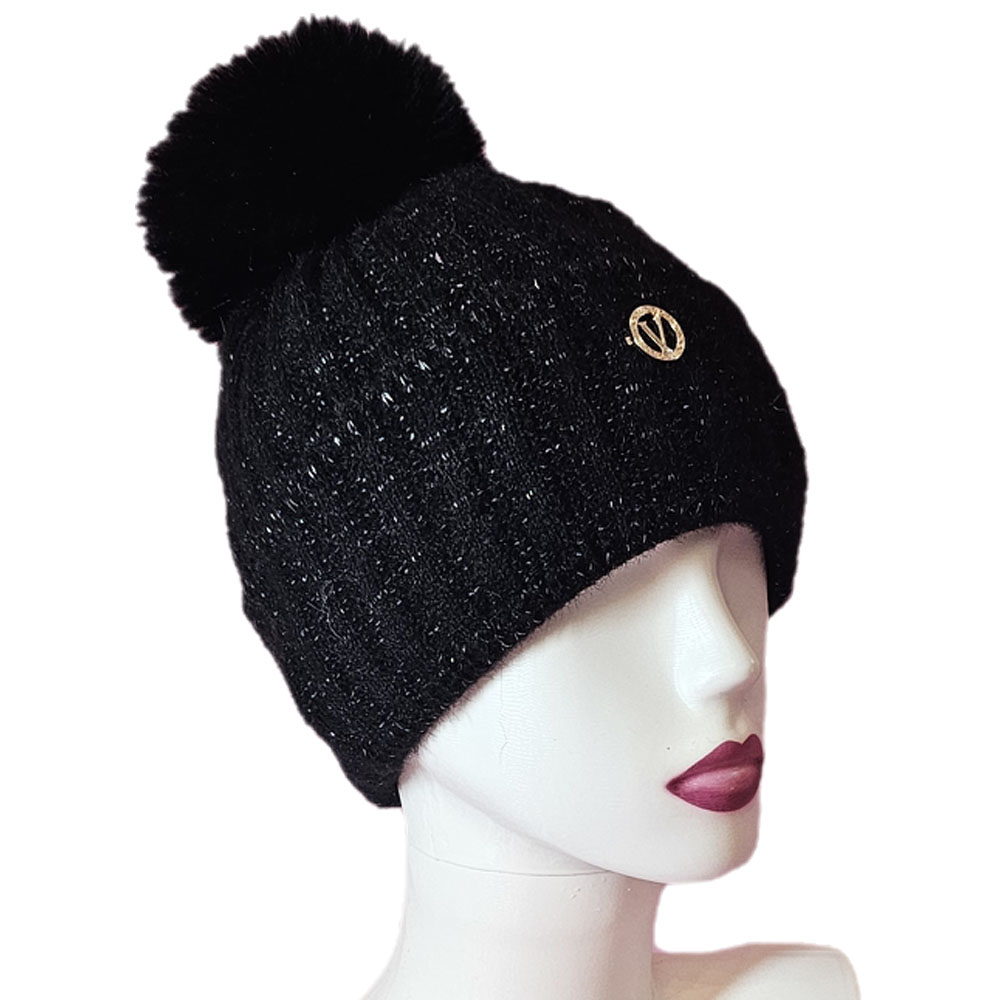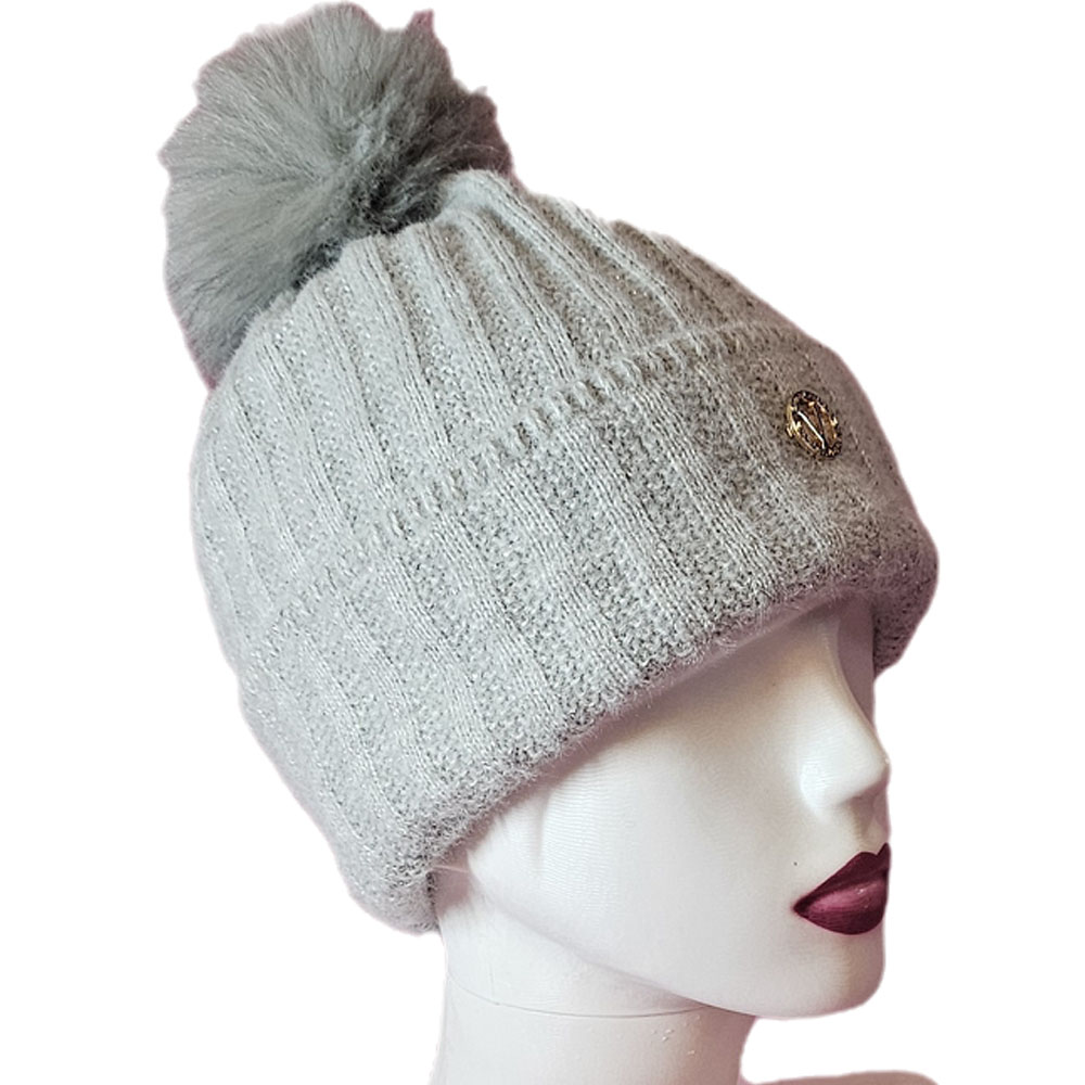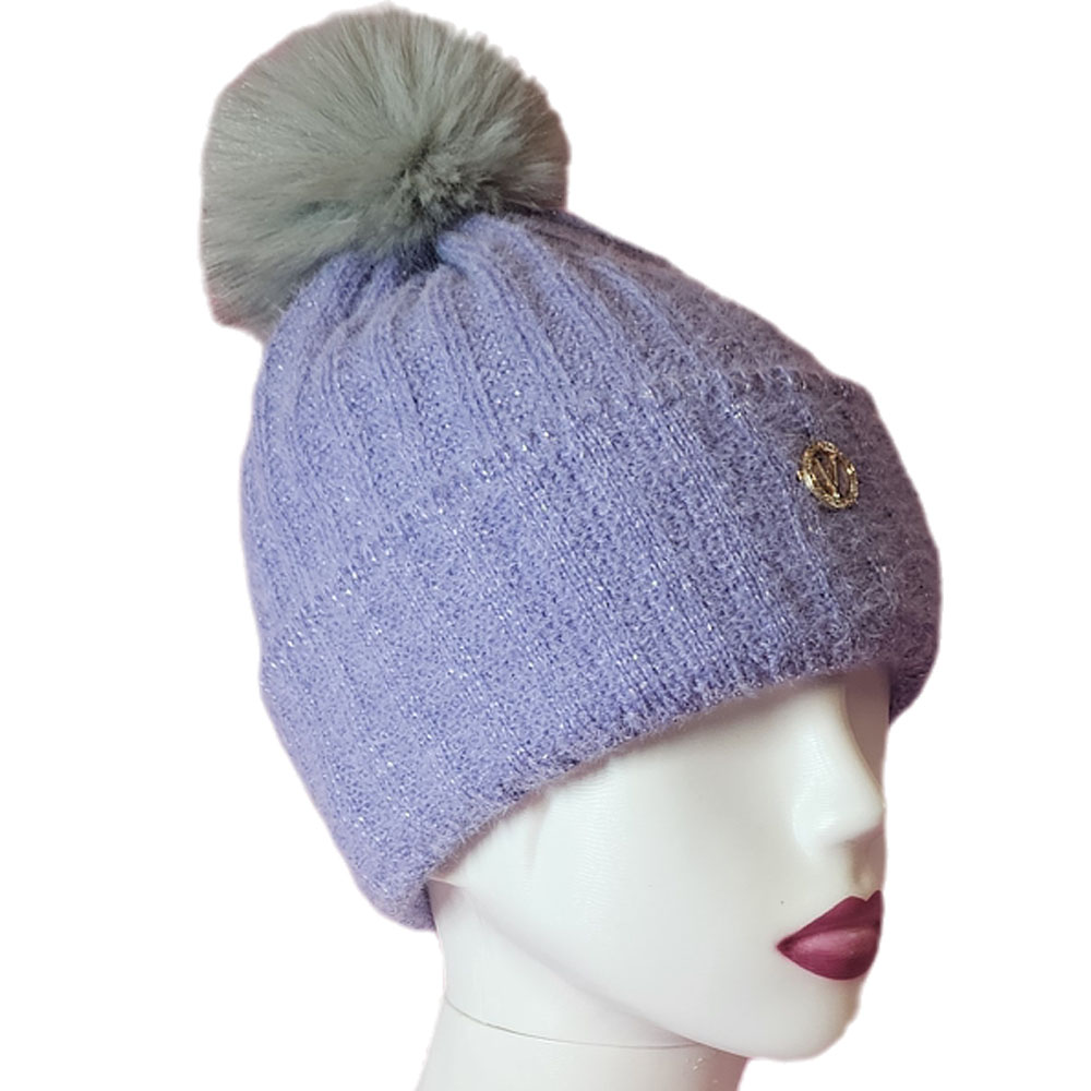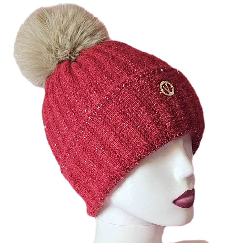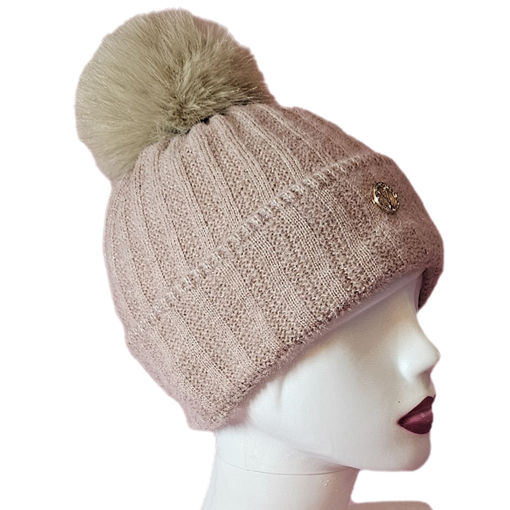Női kötött polár béléses sapka anyagában hosszában mintás csillogós
