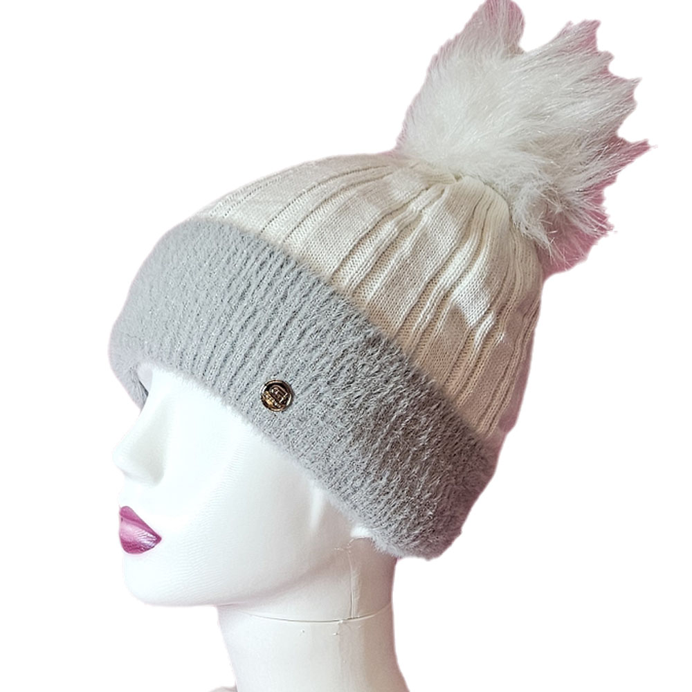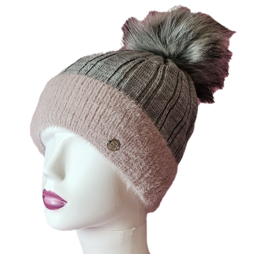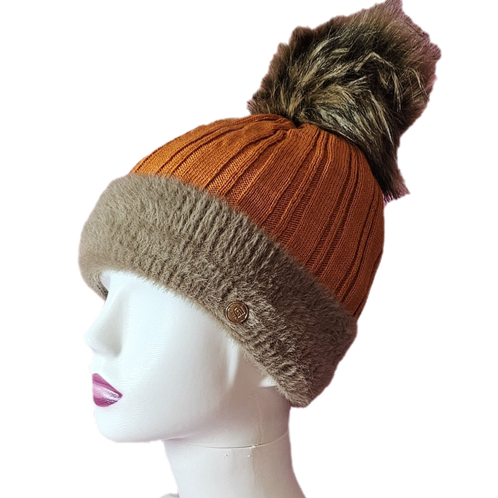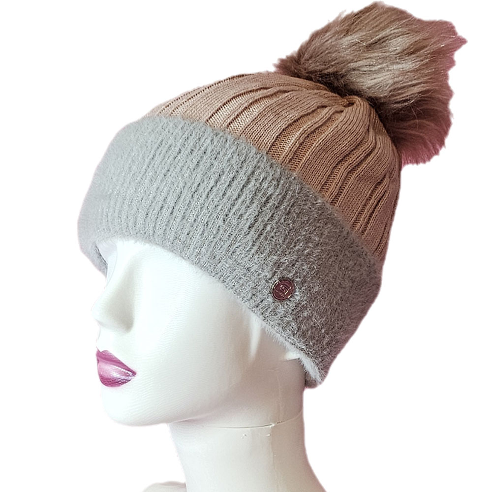 Női kötött polár béléses sapka anyagában hosszában mintás