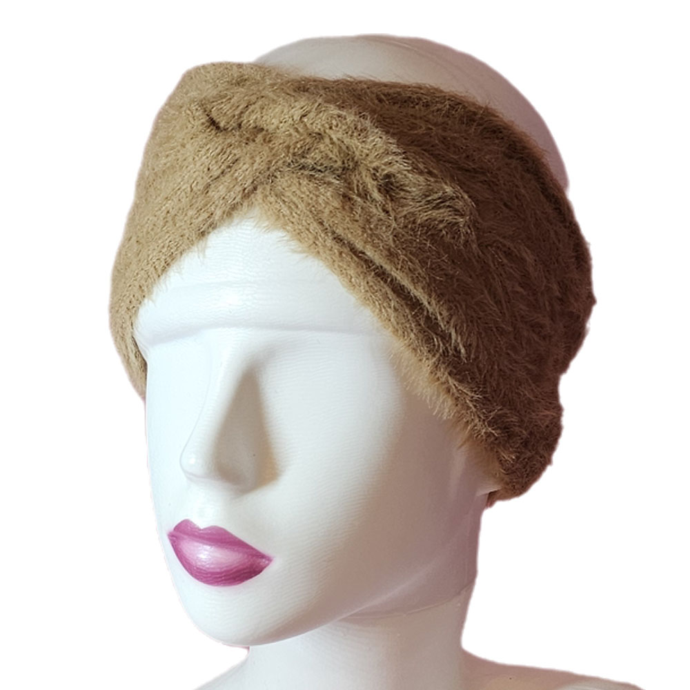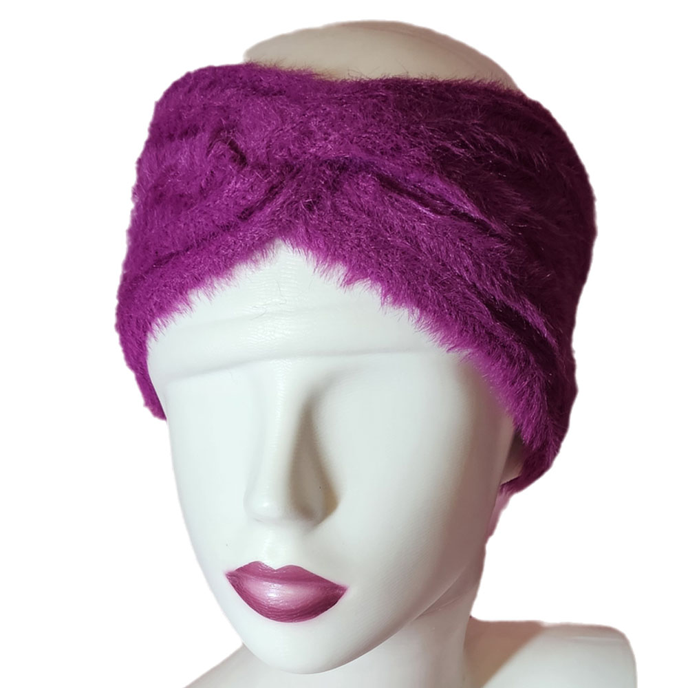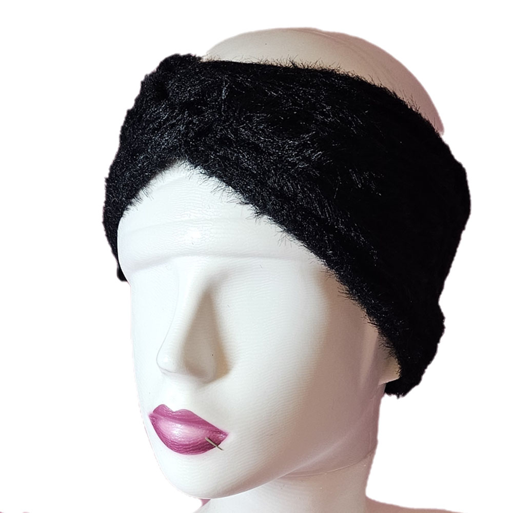 Női kötött szőrmés egyszínű fülpánt-fejpánt