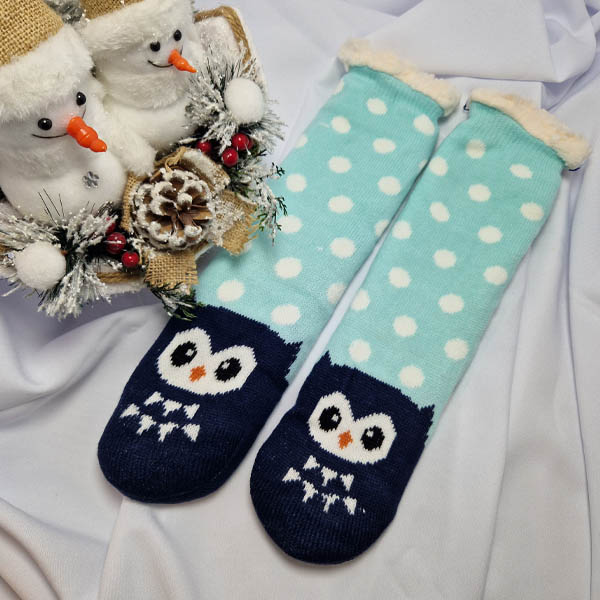 NŐI MAMUSZ bagoly minta türkiz. A házban hideg a padló? Fázik a lábad? Szerezd be magadnak vagy akár ajándékba ezt az igazán vastag zokni-mamuszt csúszásgátlós kiegészítőjével!
